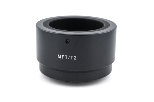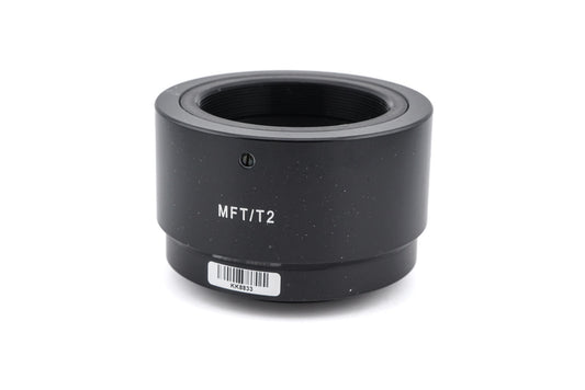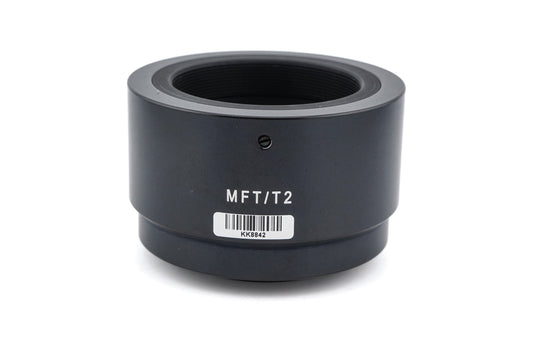 Adapter made by Novoflex for mounting T2 lenses on Micro Four Thirds digital mirrorless cameras. Metal body available in black.