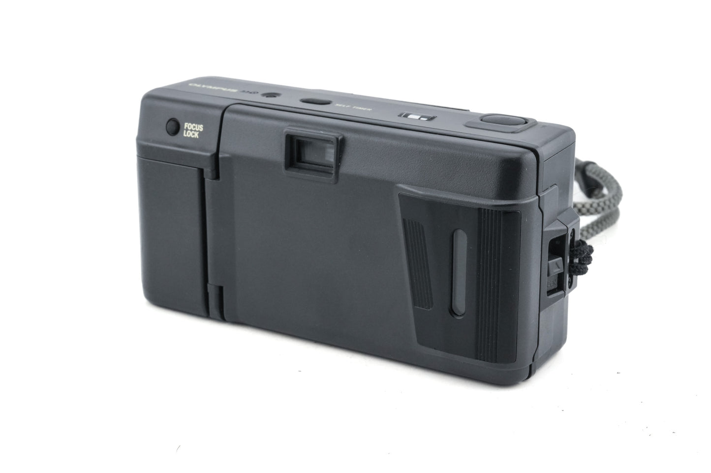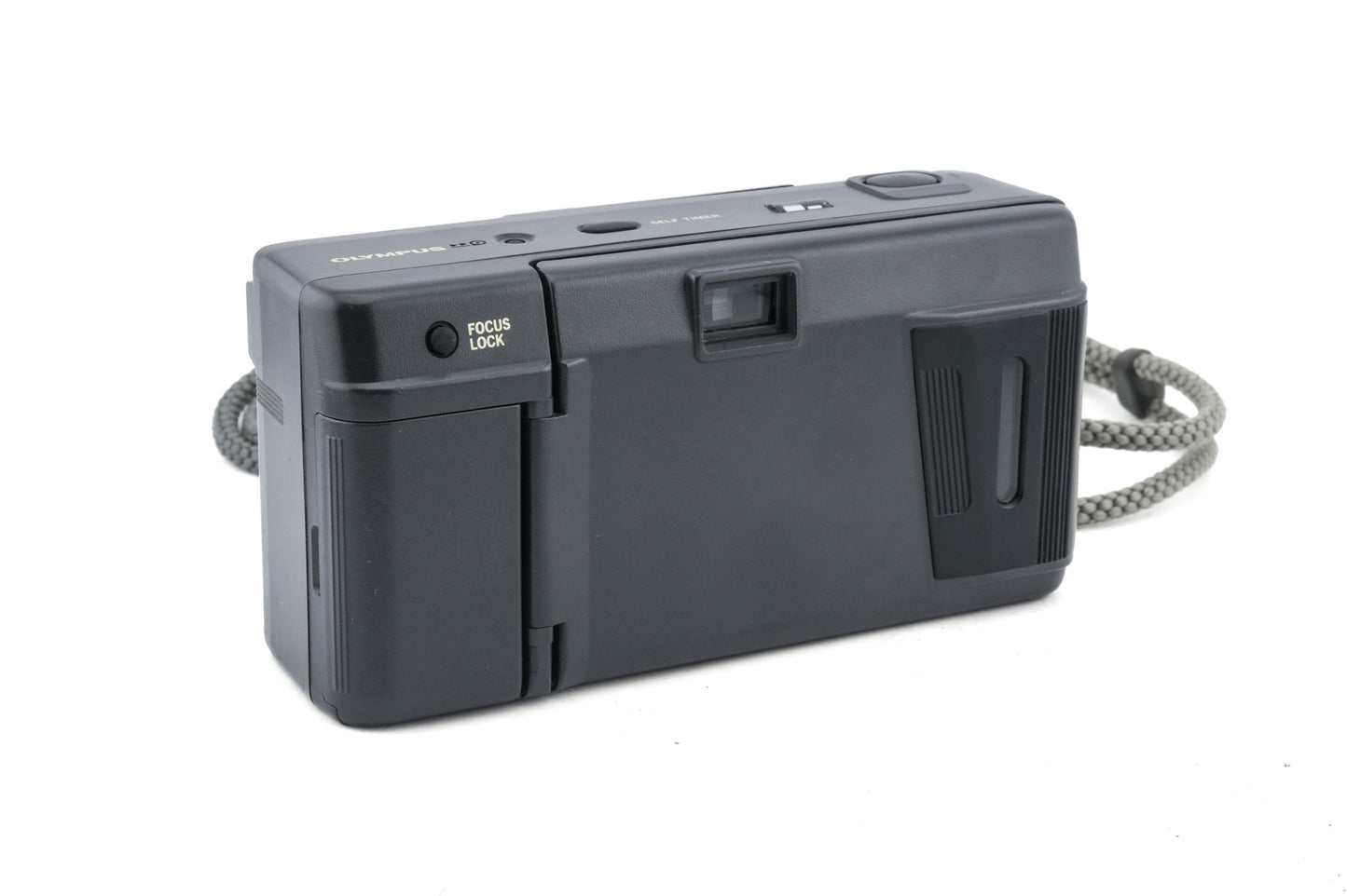 Autofocus 35mm point-and-shoot camera released by Olympus in 1986. It was the world's first weatherproof fully automatic 35mm compact camera. It has a built-in flash and a self-timer. Plastic body available in dark gray.