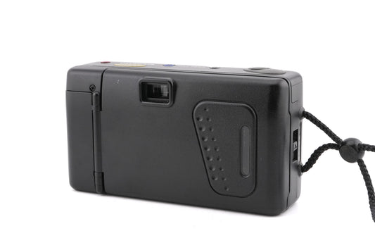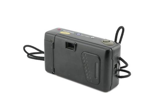 Autofocus 35mm point-and-shoot camera released by Olympus in the late 1980s. Features a sliding clamshell cover, making it and the other AF series cameras like lower-end Mju cameras. Has a self-timer and a built-in light meter. A model with a quartz date back was also made. Plastic body available in black and red.