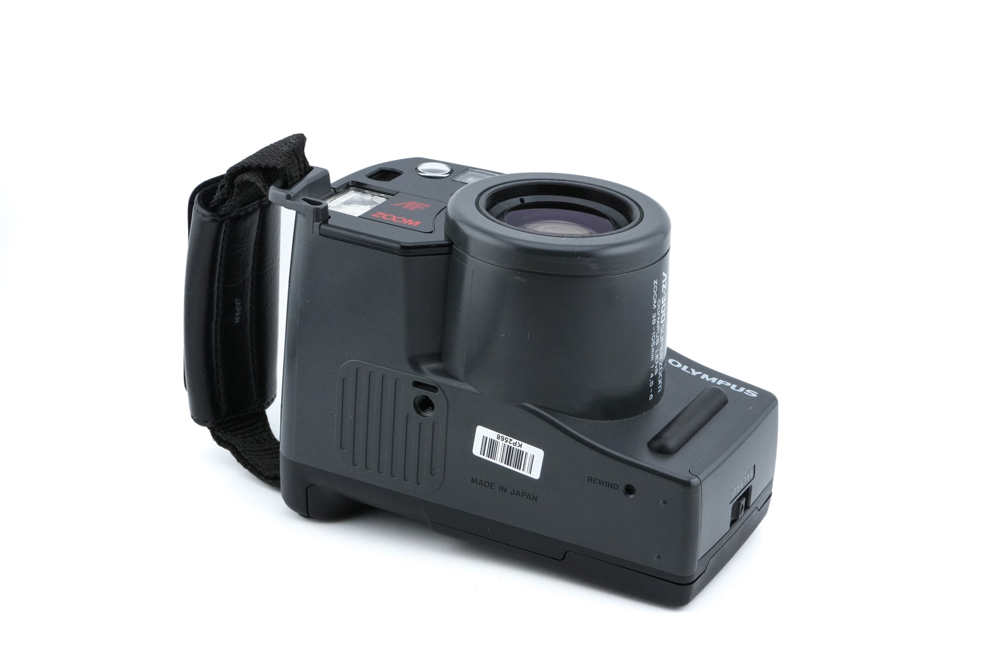 Autofocus 35mm compact point-and-shoot camera introduced by Olympus in 1988. It won the European Camera of the Year prize and was a big part in the development of the early bridge-style cameras. It was the first camera to have a viewfinder that automatically corrected the view in parallel to the zooming lens. It features passive AF, exposure compensation of +/- 1.5, and optional spot metering. Plastic body available in grey/black.