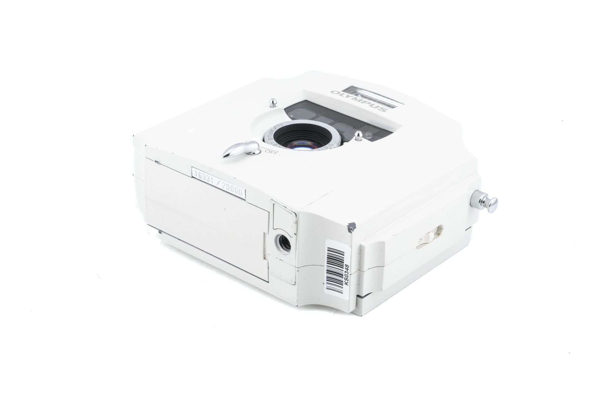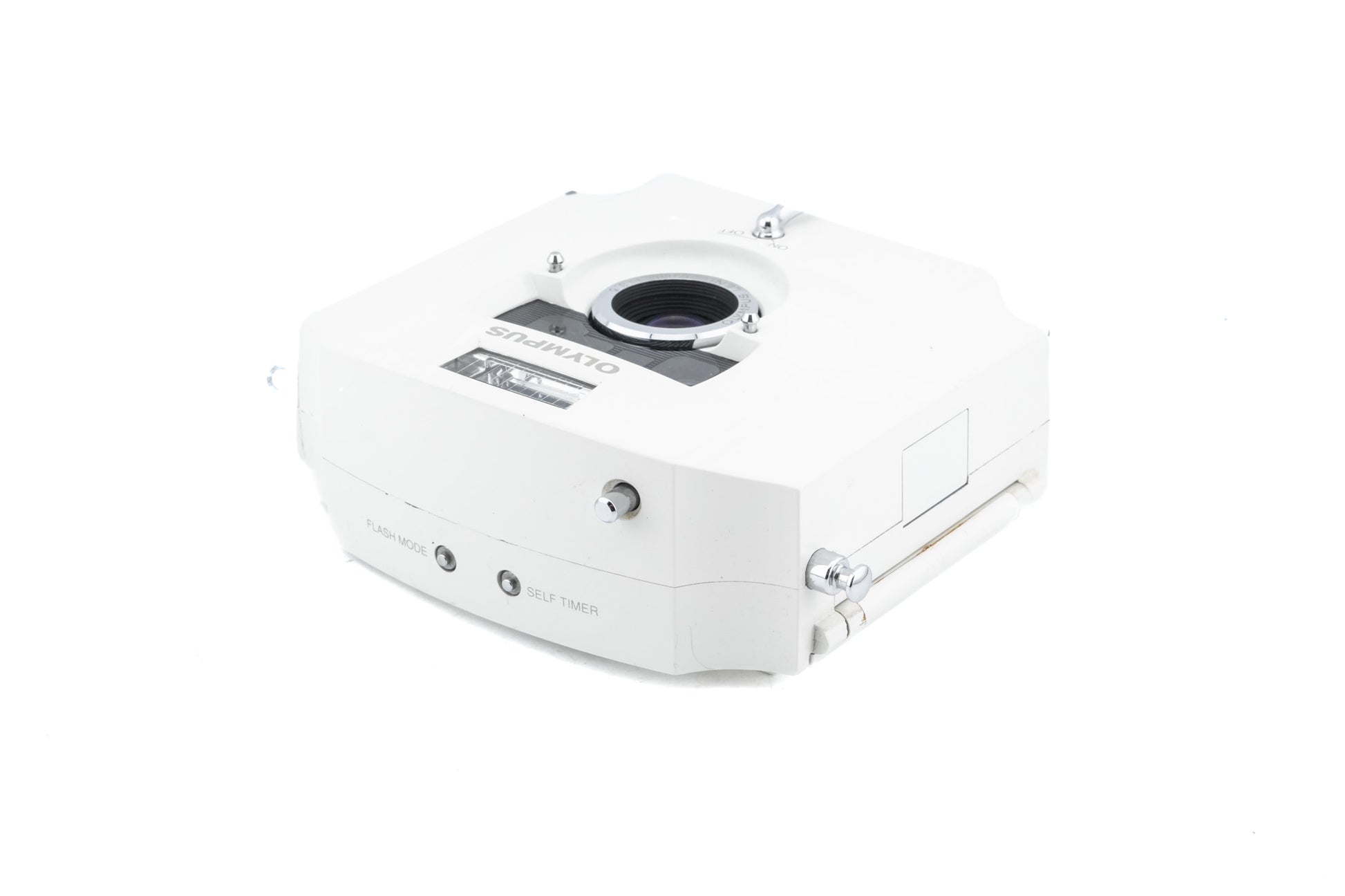Autofocus 35mm point-and-shoot camera released by Olympus in 1991. This special version is based on the original Olympus Mju-1 and features an external design made by Naoki Sakai. Only 20,000 were made. Plastic body available in white.