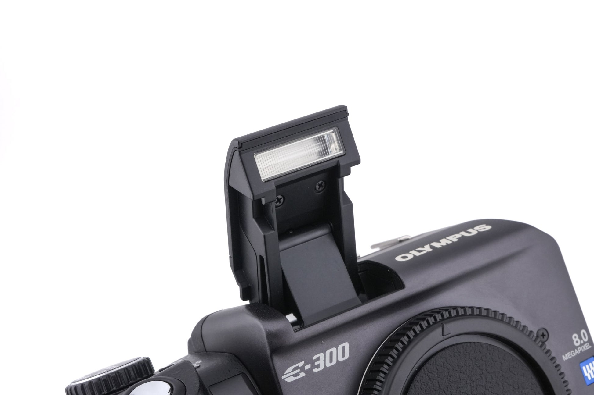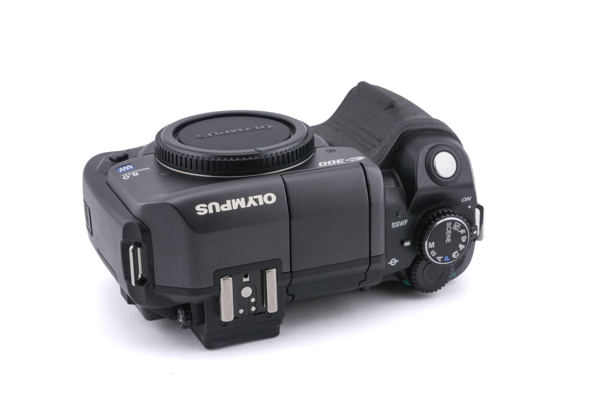 Autofocus Four Thirds digital SLR released by Olympus in 2004. This was the second camera released for the Four Thirds system and features a horizontal mirror/prism system like the earlier half-frame PEN F. It was also known as the EVOLT E-300 (US). Metal/plastic body available in black.
