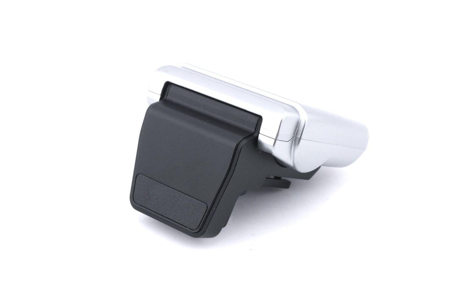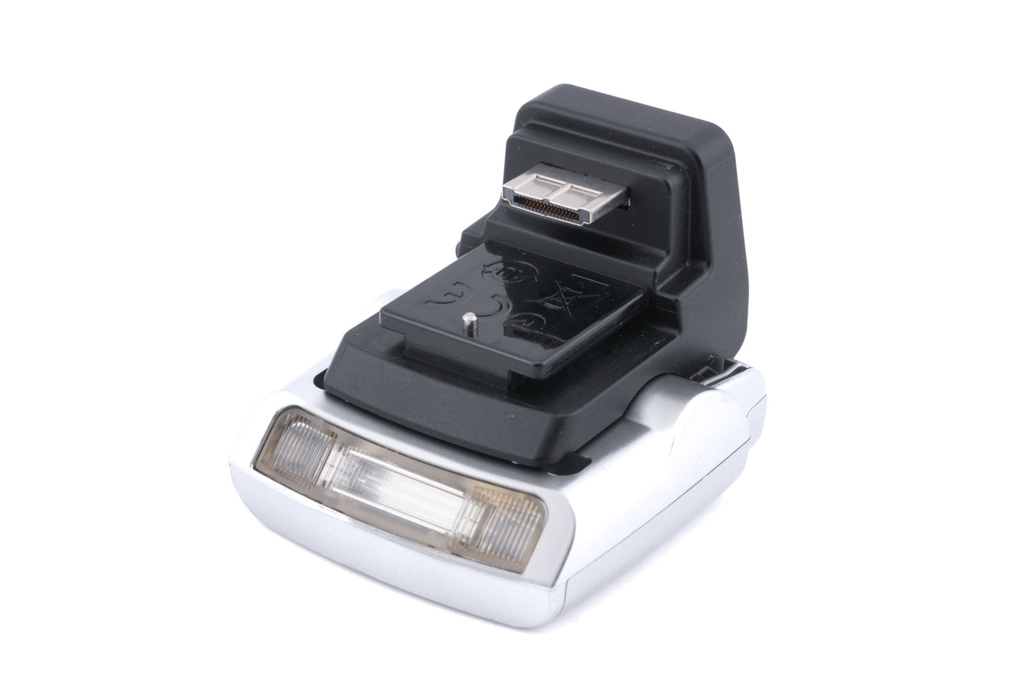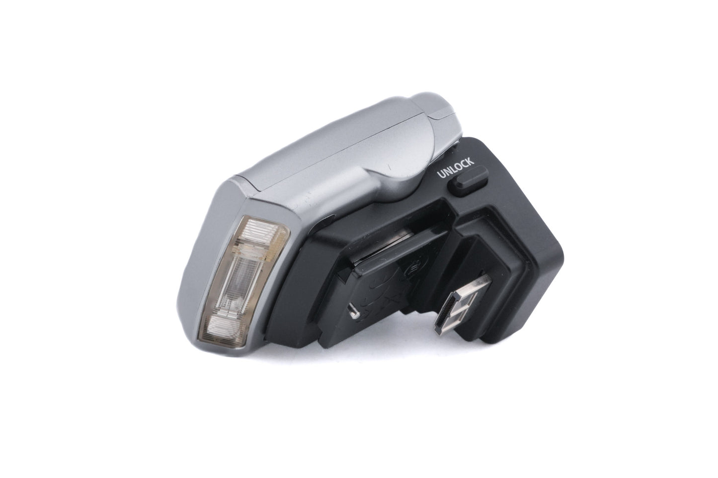 Small-sized flash unit made by Olympus. Plastic body available in silver.
