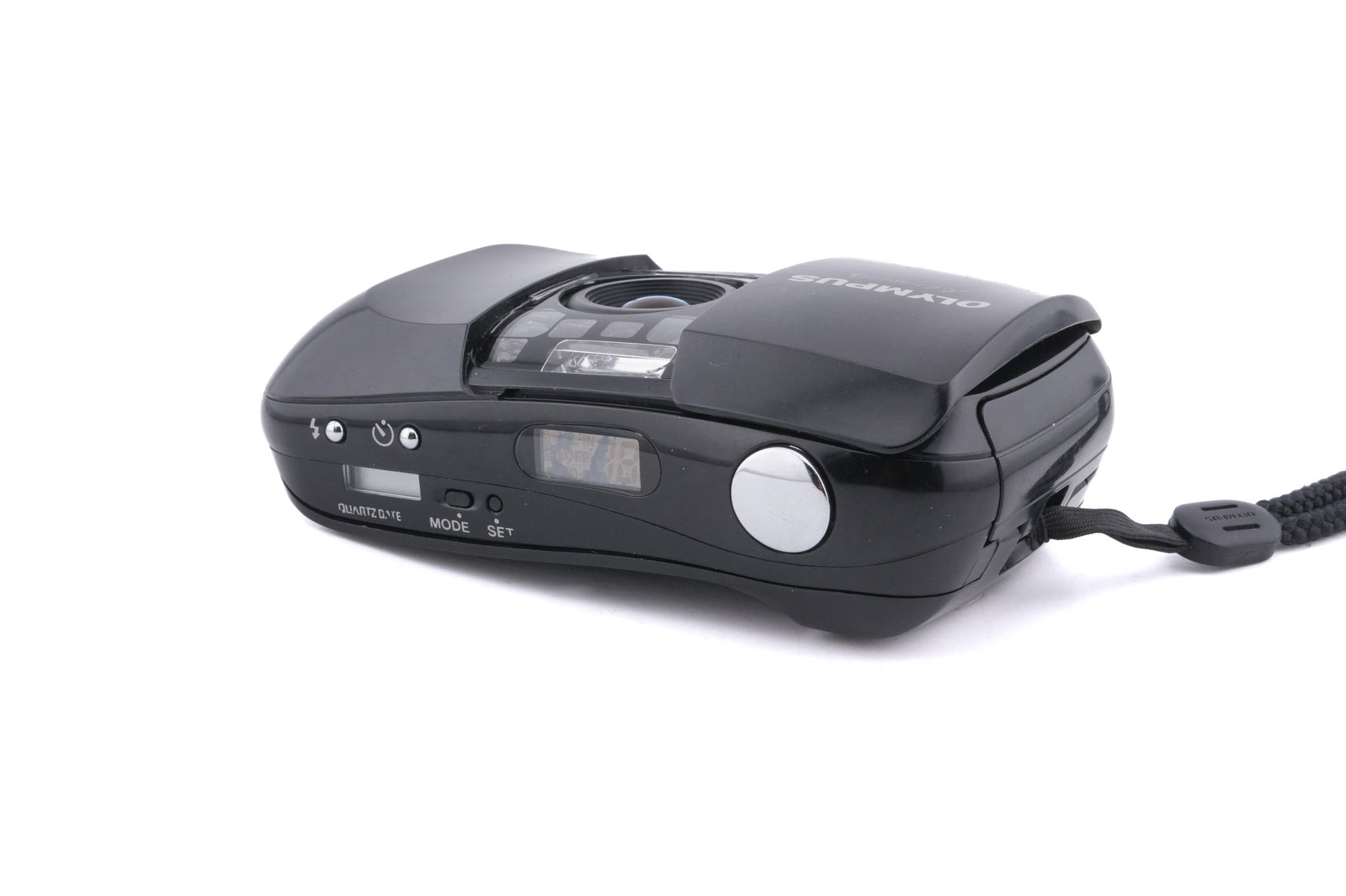 Autofocus 35mm point-and-shoot camera released by Olympus in 1991. It has a built-in flash and a sliding lens cover. It was also sold as the Infinity Stylus (NA). Plastic body available in black.