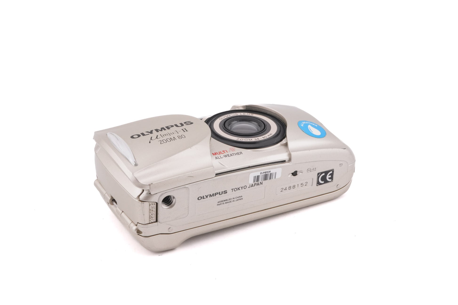 Autofocus 35mm point-and-shoot camera released by Olympus in 1999. The Zoom 80 has the shortest zoom range of any Mju-II Zoom model but features the same weather-sealing and basic features as other models. Also known as the Infinity Stylus Epic Zoom 80 (NA). Plastic body available in black/champagne.