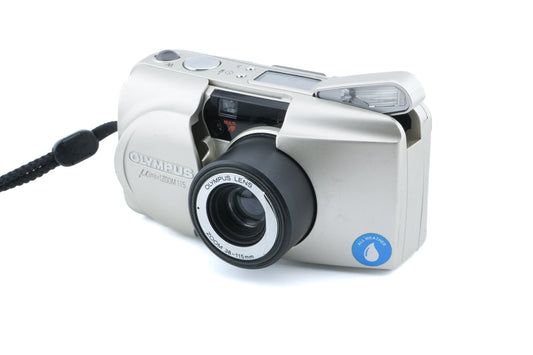 Autofocus 35mm point-and-shoot camera released by Olympus. It has light weather sealing and diopter adjustment. Plastic body available in black and champagne.