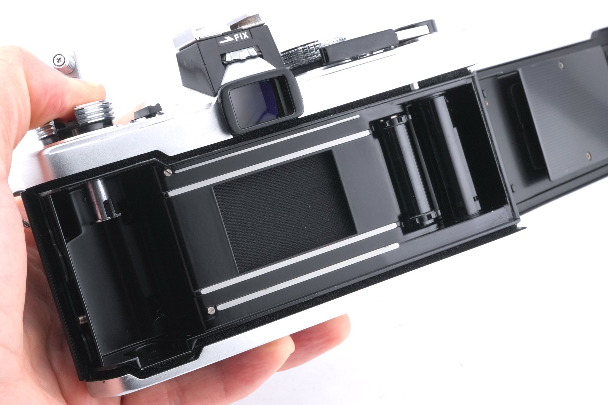 Manual focus OM-mount 35mm SLR released by Olympus in 1972. The main difference between the OM-1 and OM-1 MD is the motor drive capability. Metal body available in black & silver.