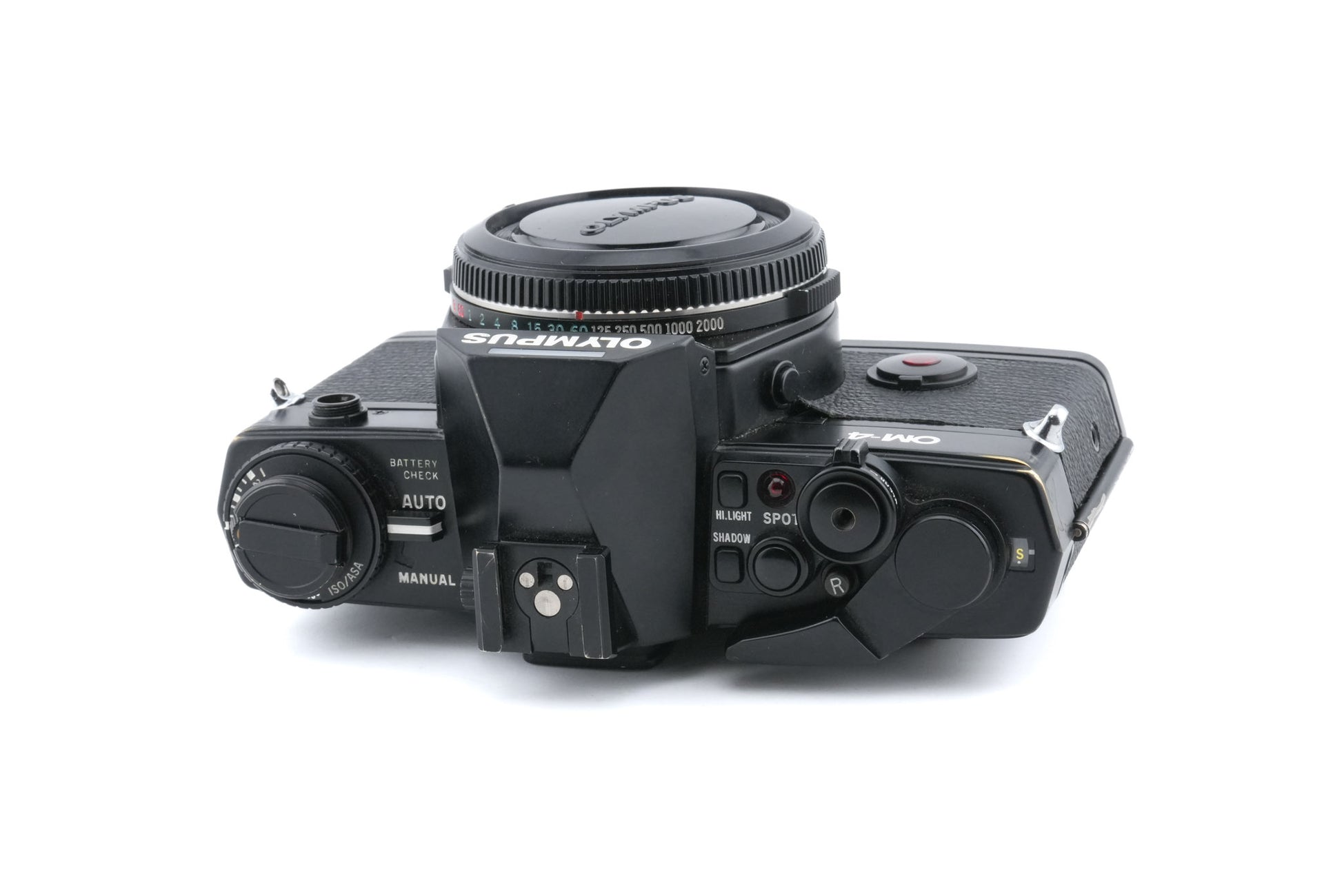 Manual focus 35mm OM mount SLR released by Olympus in 1983. Automatic and manual exposure control with a multi-spot internal light meter that can store and take the average of eight separate spot meter readings. Metal body available in black.
