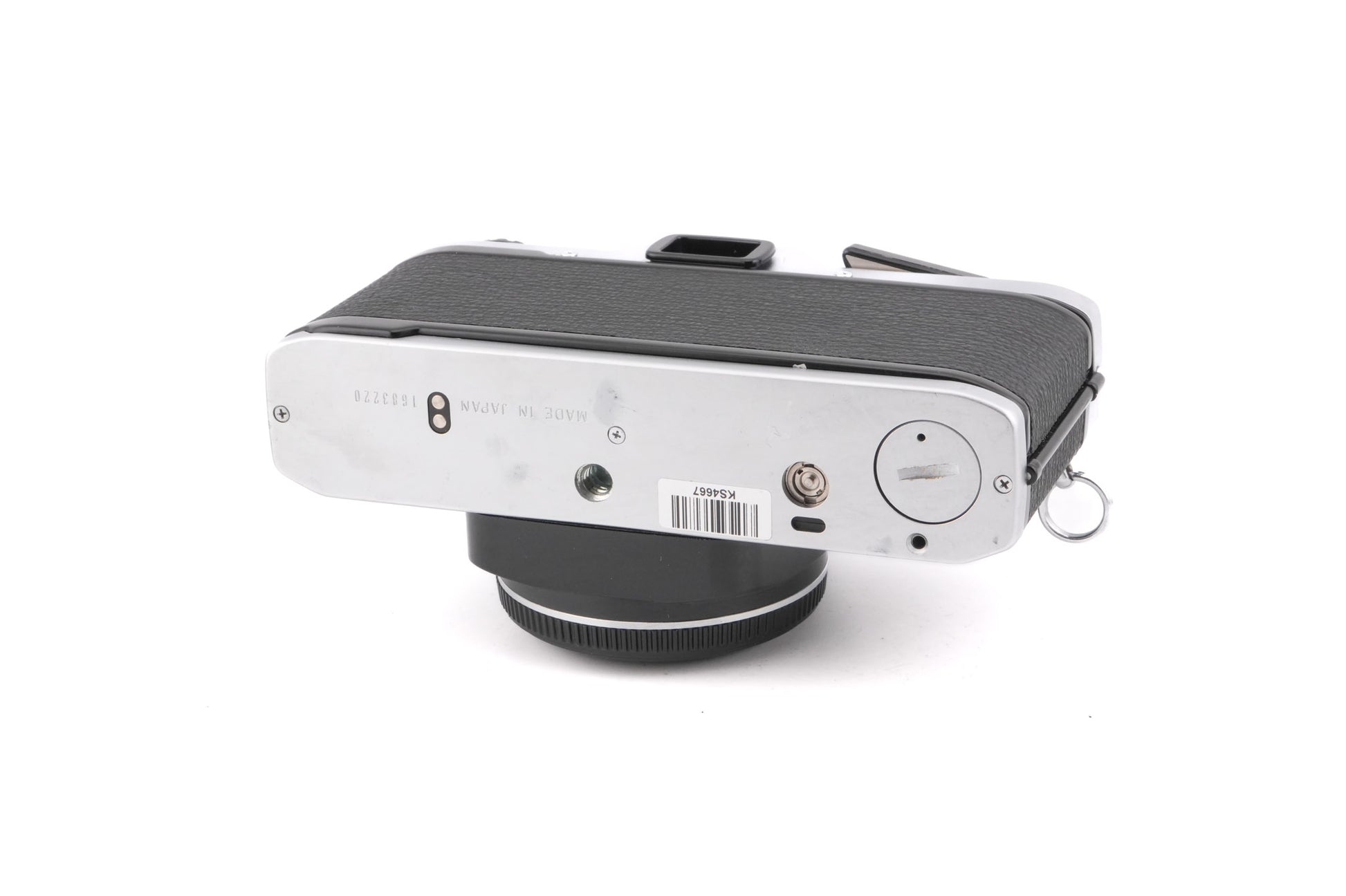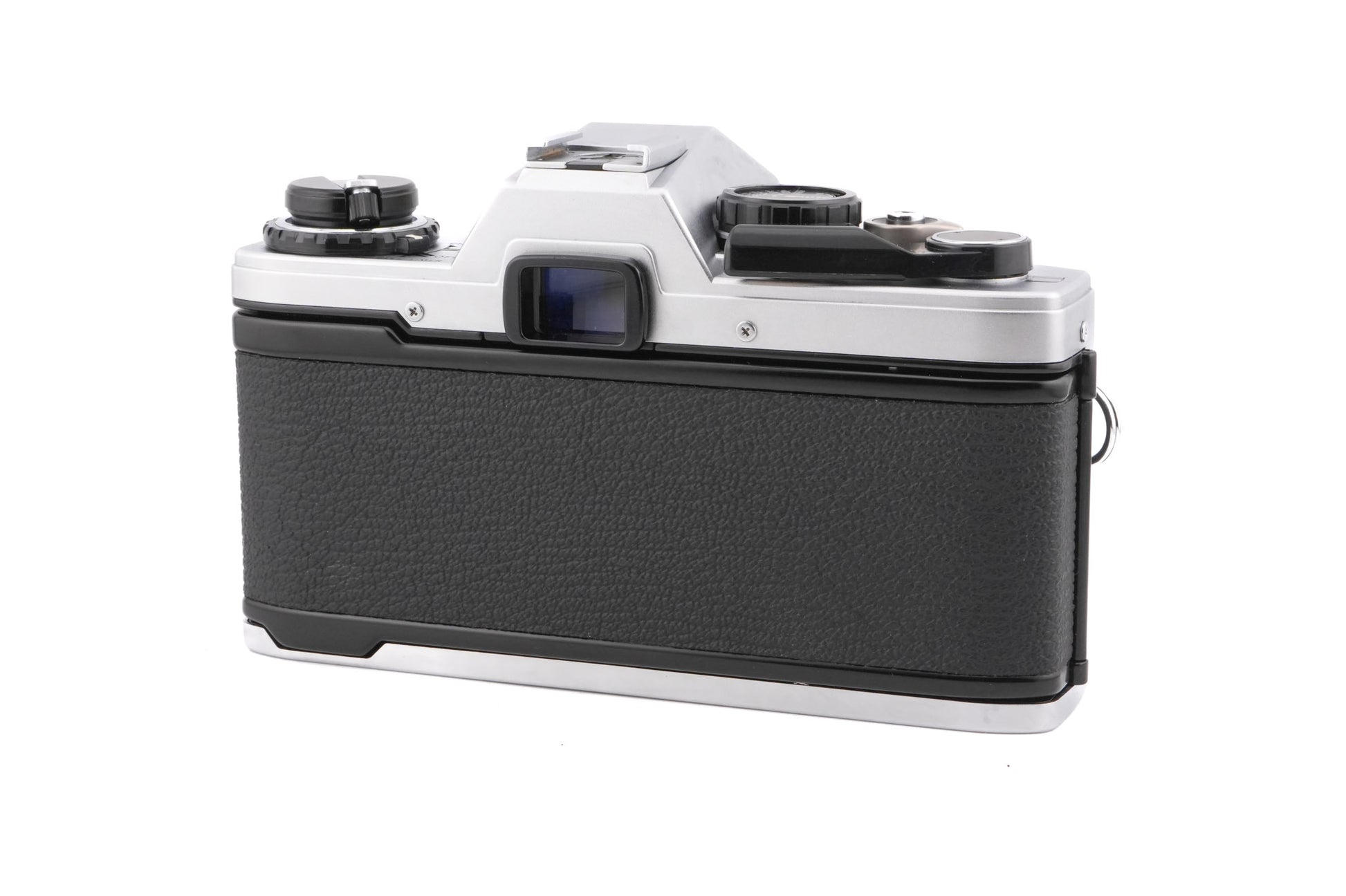 Manual focus OM-mount 35mm SLR released by Olympus in 1979. This was the first of Olympus' 2-digit OM series aimed at consumers instead of professionals. Fires only in aperture priority mode unless the optional manual adapter is attached. It has a self-timer, a hot shoe, and +/- 2 exposure compensation. Metal body available in silver.