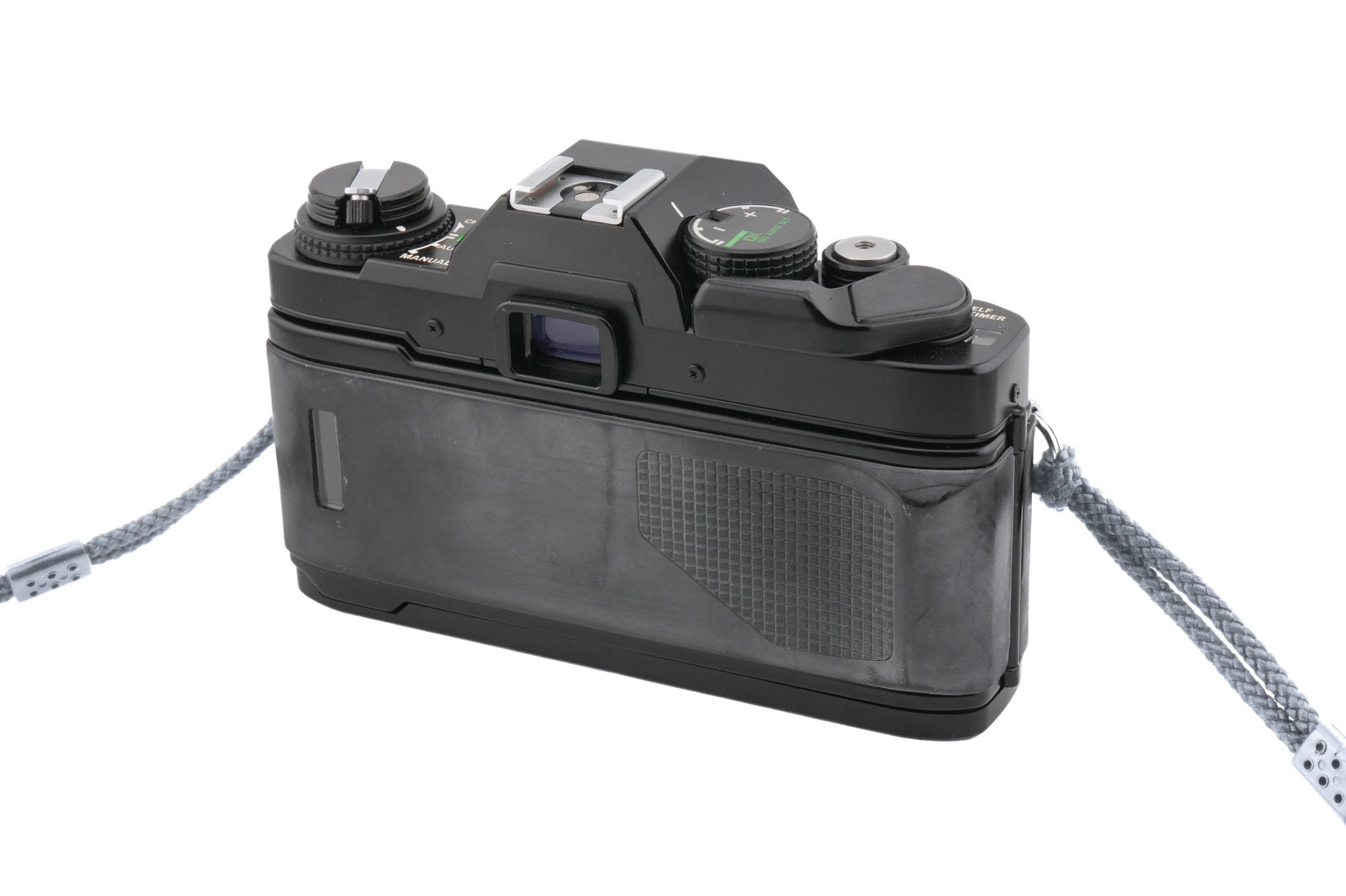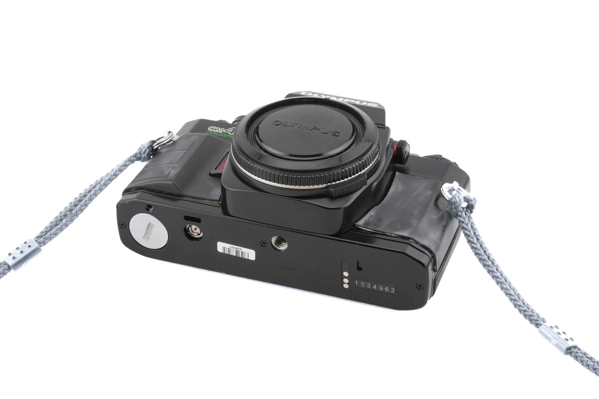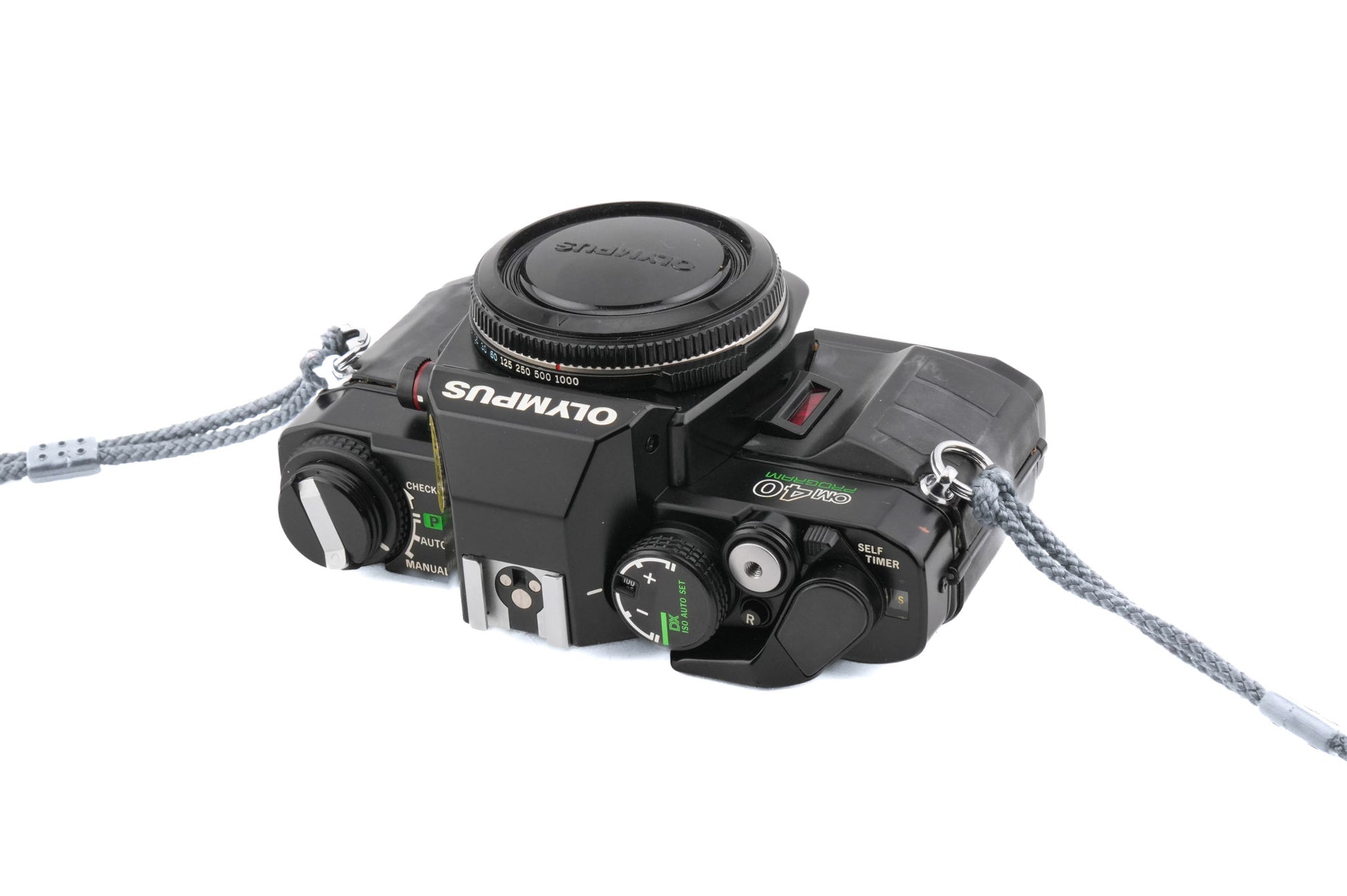 Manual focus OM-mount 35mm SLR released by Olympus in 1985. It added fully programmed exposure to the previous double-digit OM bodies. Plastic body available in black.