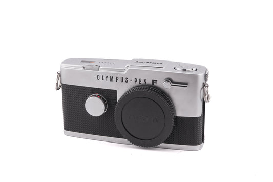 The Olympus Pen F system was a one of a kind, half frame SLR system introduced in 1963. The size of the frame is exactly half of that on normal 35mm cameras. The Olympus Pen F SLR featured a vertical mirror and interchangeable lenses which were very uncommon for a half-frame camera. The benefit of shooting a half-frame SLR was the ability to shoot twice the amount of frames per roll while still having the framing accuracy of a single lens reflex camera.