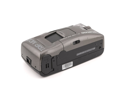 Fixed-focus 35mm point-and-shoot compact camera made by Olympus. It is fully electronically controlled. It has a built-in flash and a sliding lens cover. Plastic body available in grey.