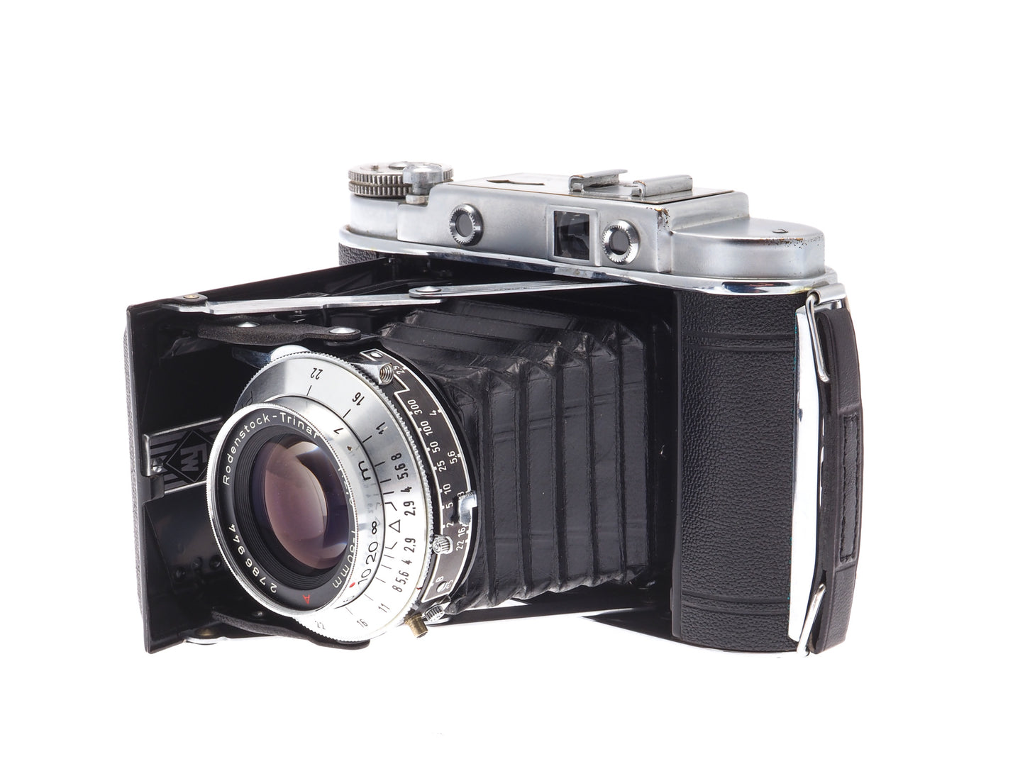 Manual focus foldable 120 film camera released by Franka made in Germany (US-Zone). Similar to the Solida III but with an uncoupled rangefinder on top of the camera. Were produced with multiple different combinations of lenses and shutters (some are listed here but other combinations may occur). Metal body available in silver.