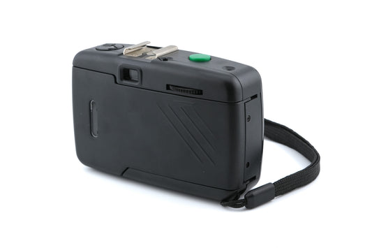 Fixed focus 35mm camera made by Topico. It has manual film winding and a hot shoe for flash. Plastic body available in black.