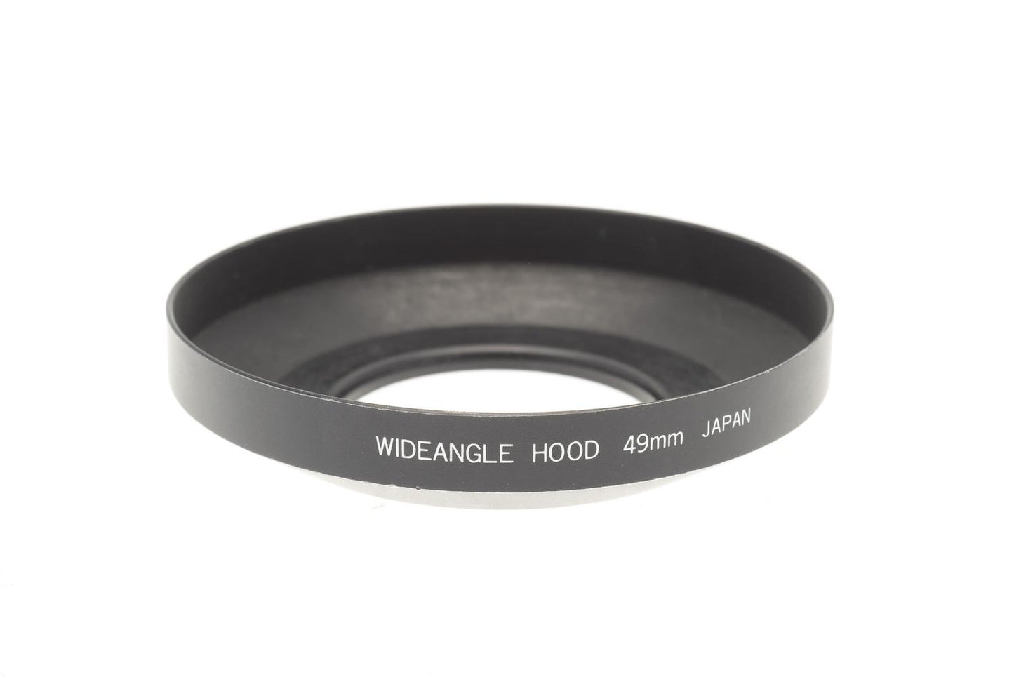 Metal lens hood for wide-angle lenses. Mounting thread is 49mm.