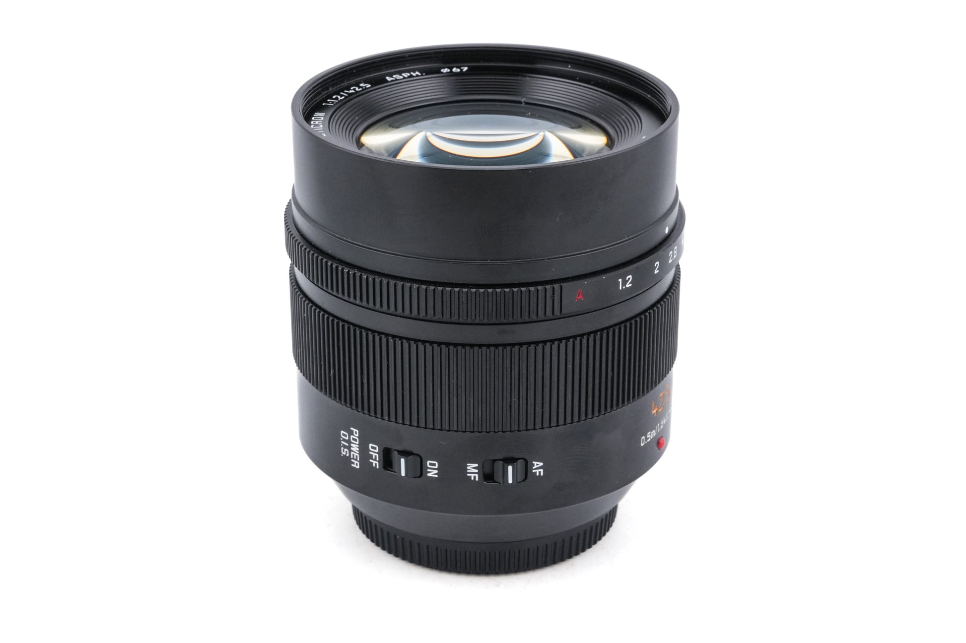 - Panasonic 42.5mm f1.2 Leica DG Nocticron ASPH. Power O.I.S. (14 elements, 11 groups)