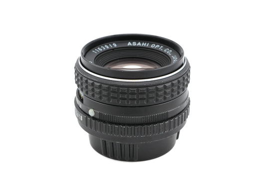 Manual focus normal lens made for K-mount 35mm SLR cameras introduced by Pentax. Metal body available in black.