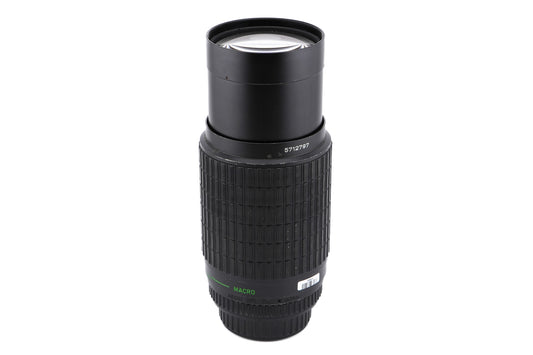 Manual focus telephoto push/pull zoom lens made for K-mount 35mm SLR cameras introduced by Pentax. Metal body available in black.