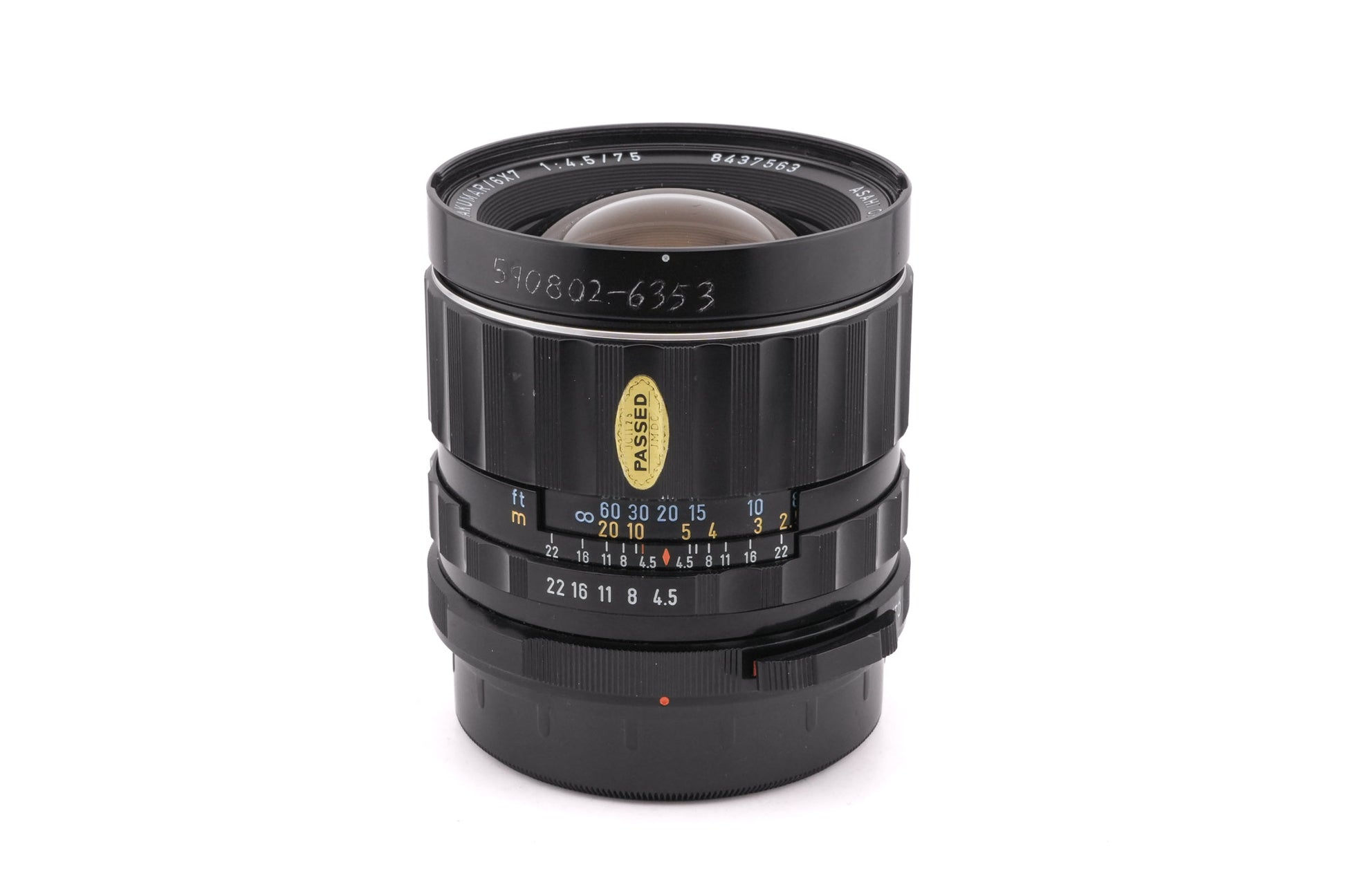 - Pentax 75mm f4.5 Super-Multi-Coated Takumar / 6x7 (5 elements, 4 groups)