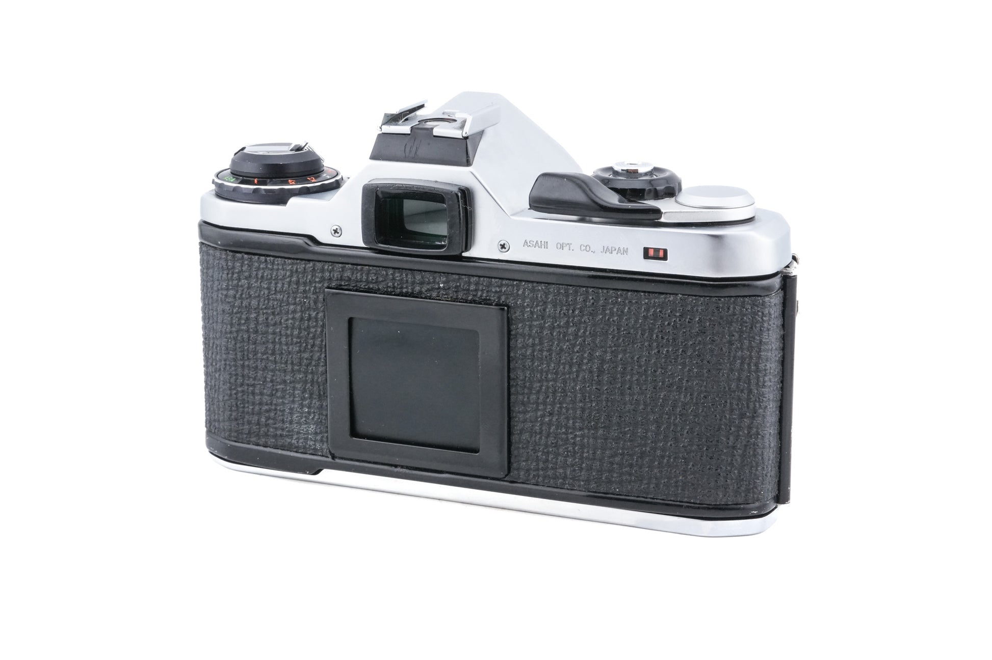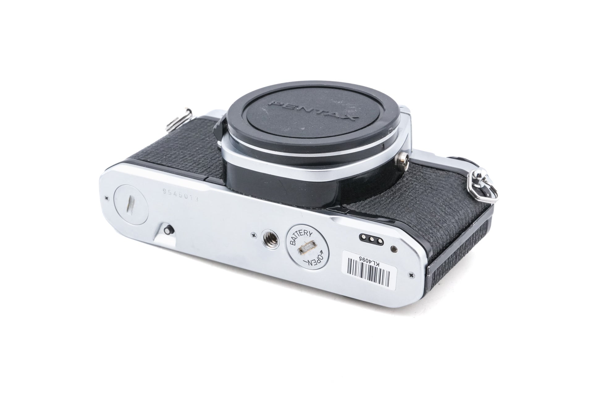 Manual focus K-mount 35mm SLR camera released by Pentax in 1976. It added aperture-priority auto-exposure to the then-popular compact SLR design introduced by the Olympus OM-1. Metal body available in black & silver.