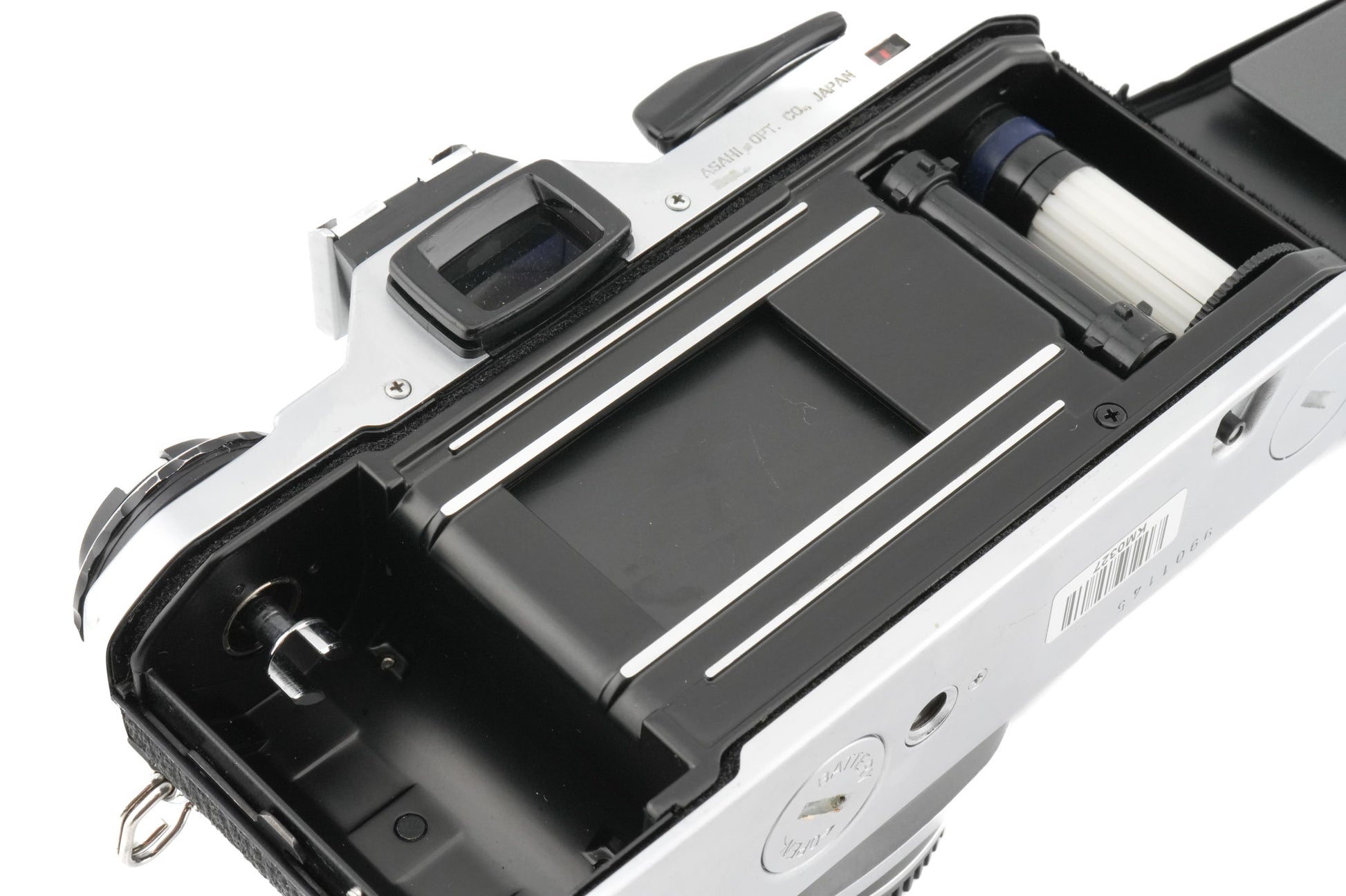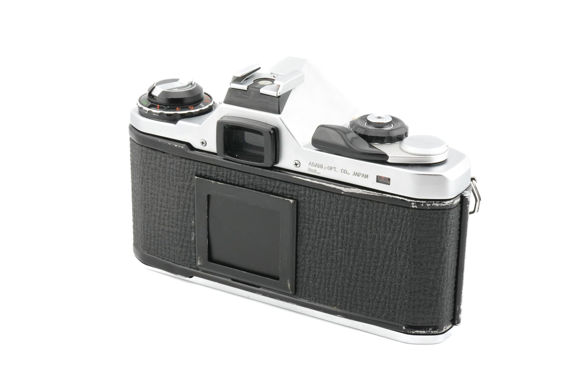 Manual focus K-mount 35mm SLR camera released by Pentax in 1976. It added aperture-priority auto-exposure to the then-popular compact SLR design introduced by the Olympus OM-1. Metal body available in black & silver.