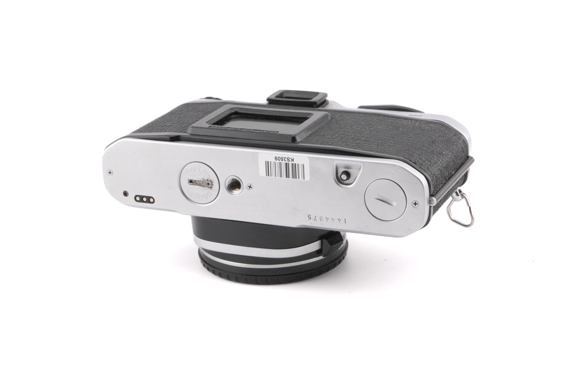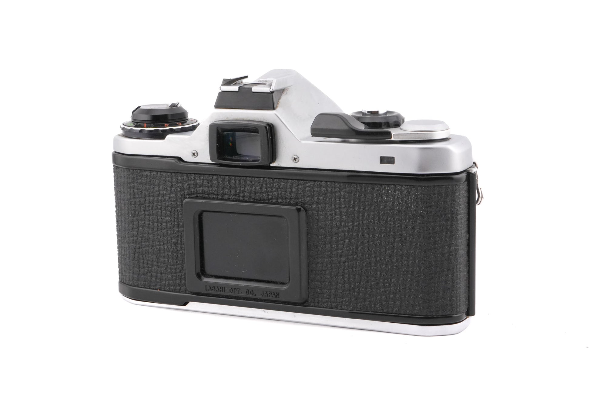 Manual focus K-mount 35mm SLR camera released by Pentax in 1976. It added aperture-priority auto-exposure to the then-popular compact SLR design introduced by the Olympus OM-1. Metal body available in black & silver.