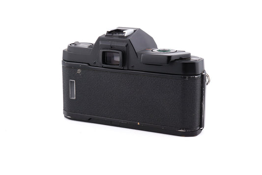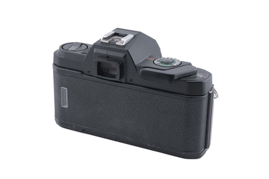 Manual focus K-mount 35mm SLR camera released by Pentax in 1985. It has program mode, aperture priority, and manual exposure. The ISO can only be set via DX code, there is no manual override. Plastic body available in black.