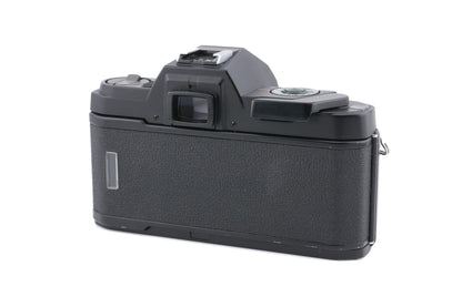 Manual focus K-mount 35mm SLR camera released by Pentax in 1985. It has program mode, aperture priority, and manual exposure. The ISO can only be set via DX code, there is no manual override. Plastic body available in black.