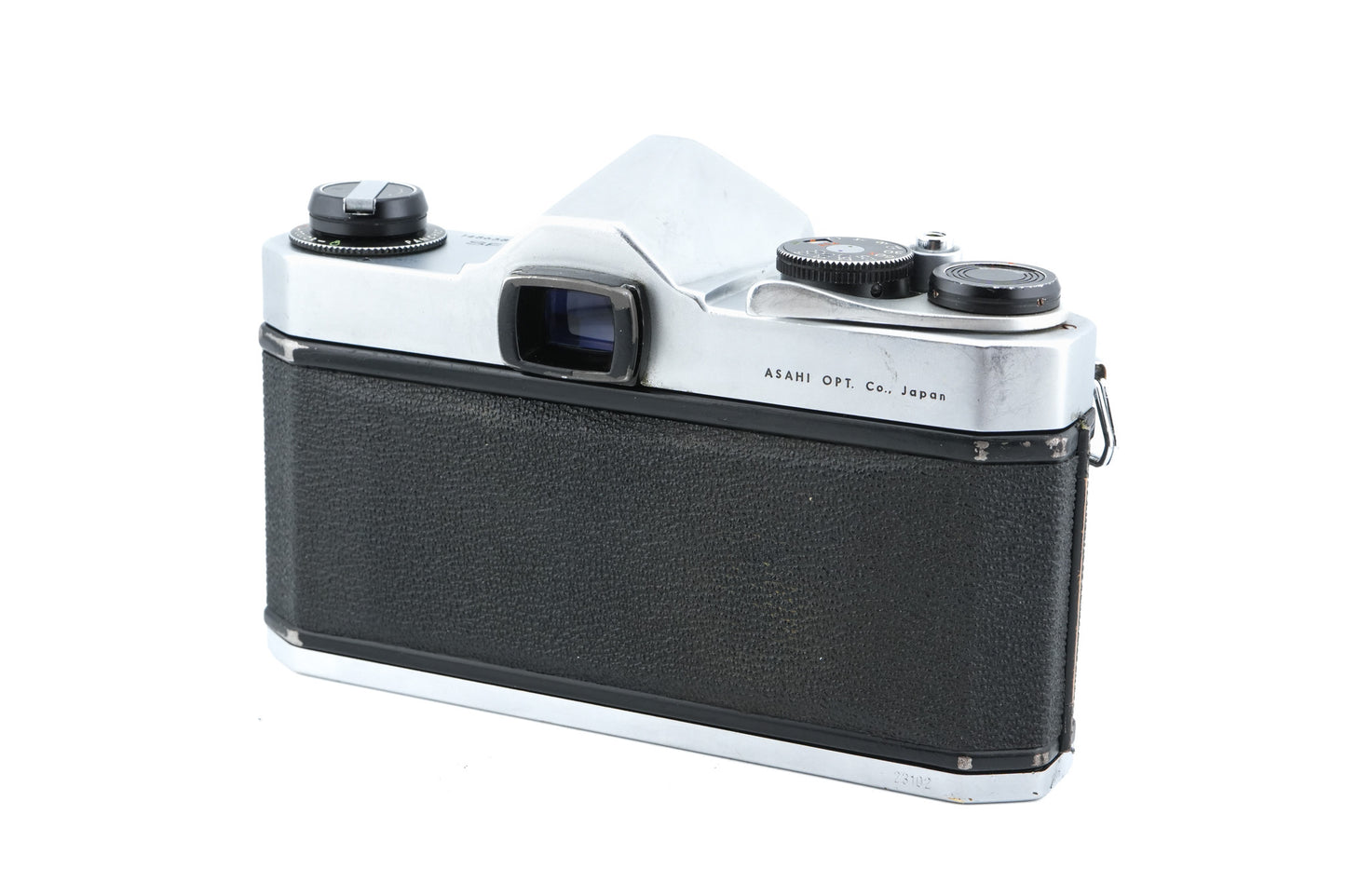Manual focus M42 mount 35mm SLR released by Pentax. The light meter is tuned for a 1.35v PX400 mercury battery. Metal body available in silver & black.