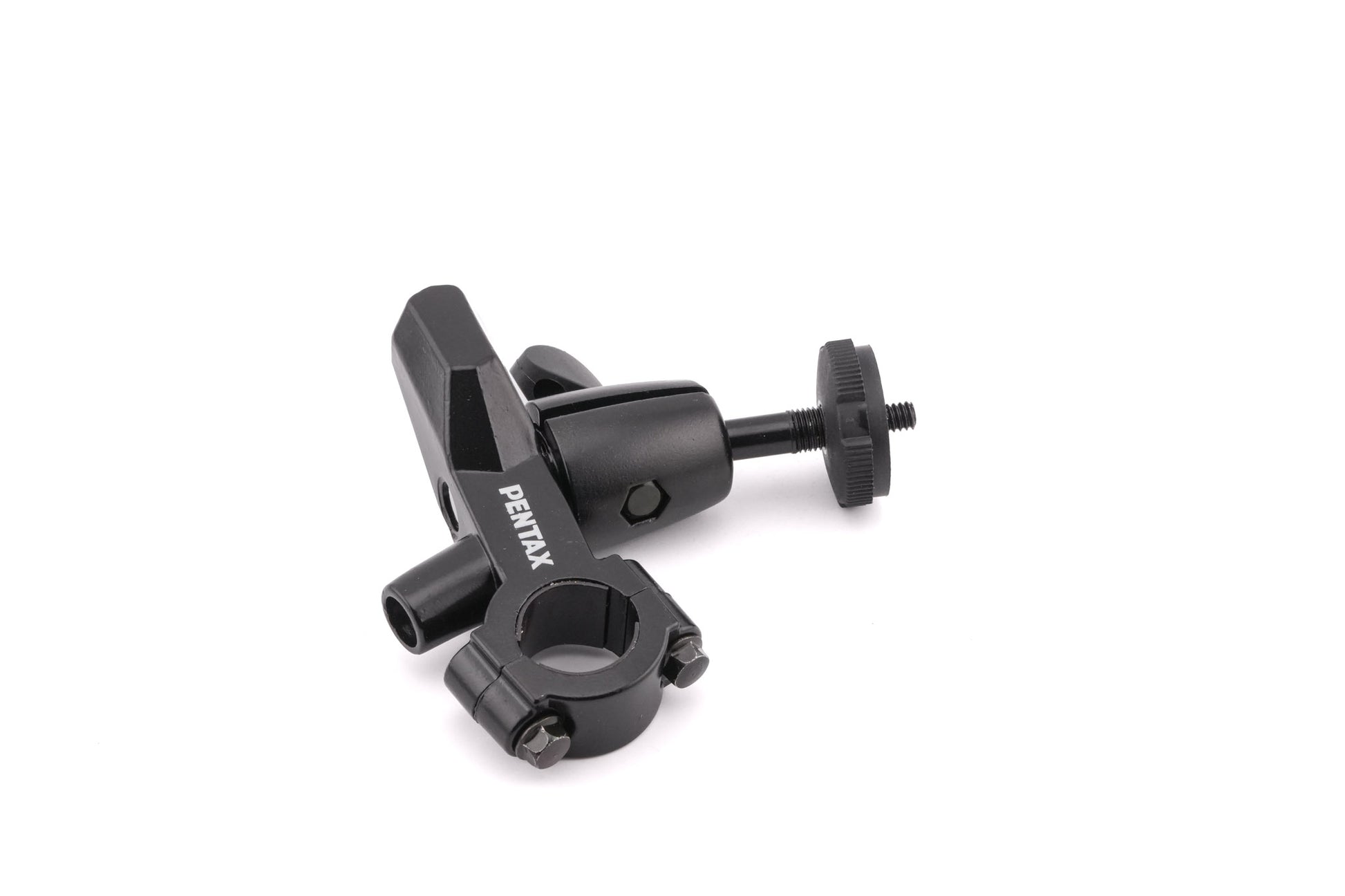 Bike mounting bracket made for the Pentax WG digital cameras introduced by Pentax. It has a ball head with a 1/4" thread. Metal body available in black.