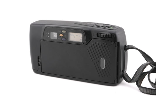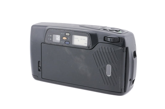Autofocus point & shoot 35mm camera released by Pentax. It has two types of zoom: continuous and step zoom. Provides +1.5 EV exposure compensation and a multi-exposure mode. It has a 10s self-timer with a dual-frame mode. Has a built-in flash. Plastic body available in black.
