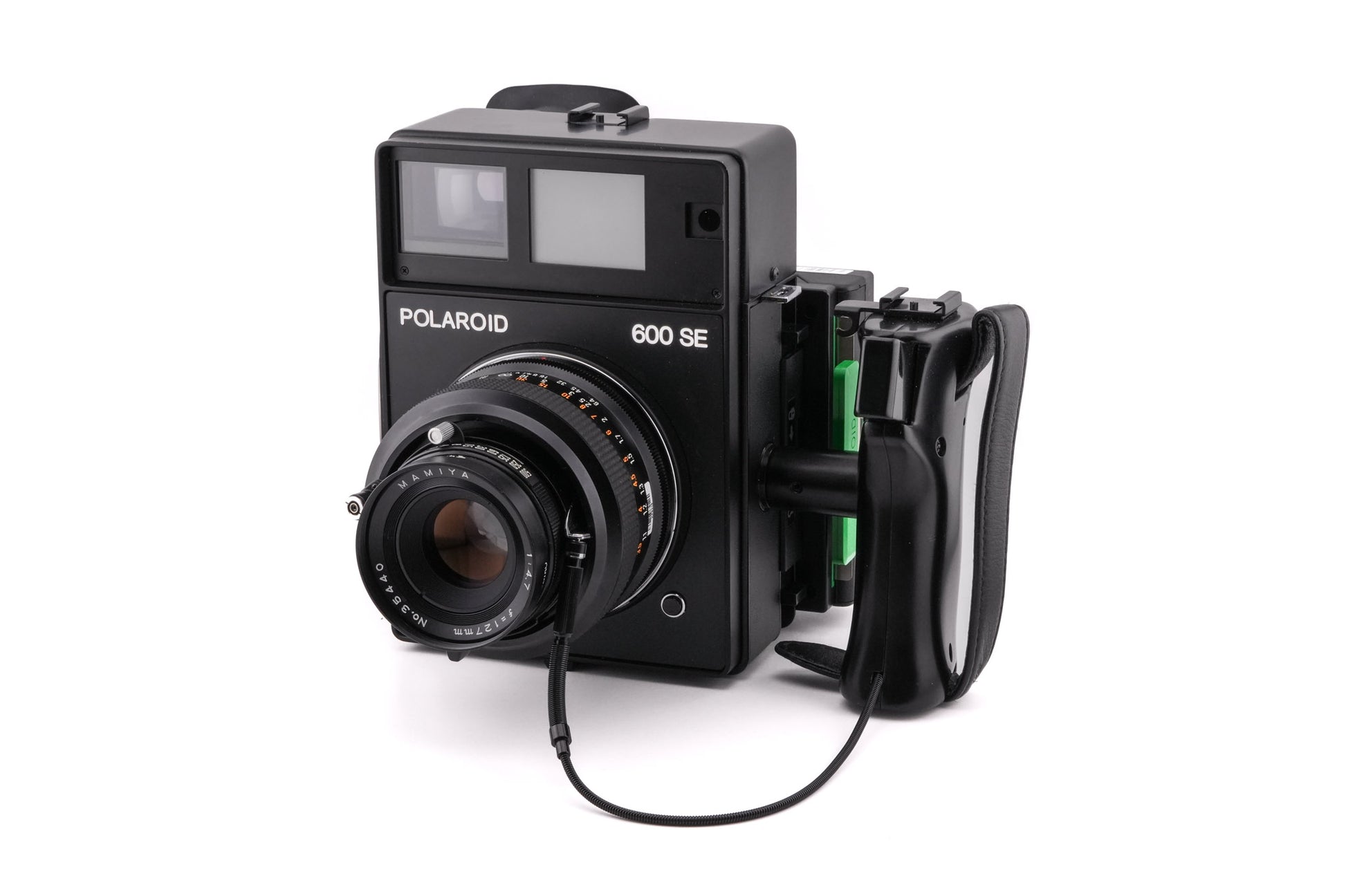 Manual focus instant film rangefinder camera introduced by Polaroid. It was based on the Mamiya Press cameras and uses Mamiya lenses. The SE model added interchangeable lenses wereas the older 600 model had a fixed 127mm. It uses Polaroid 3 ¼ × 4 ¼ instant pack films. Metal body available in black.
