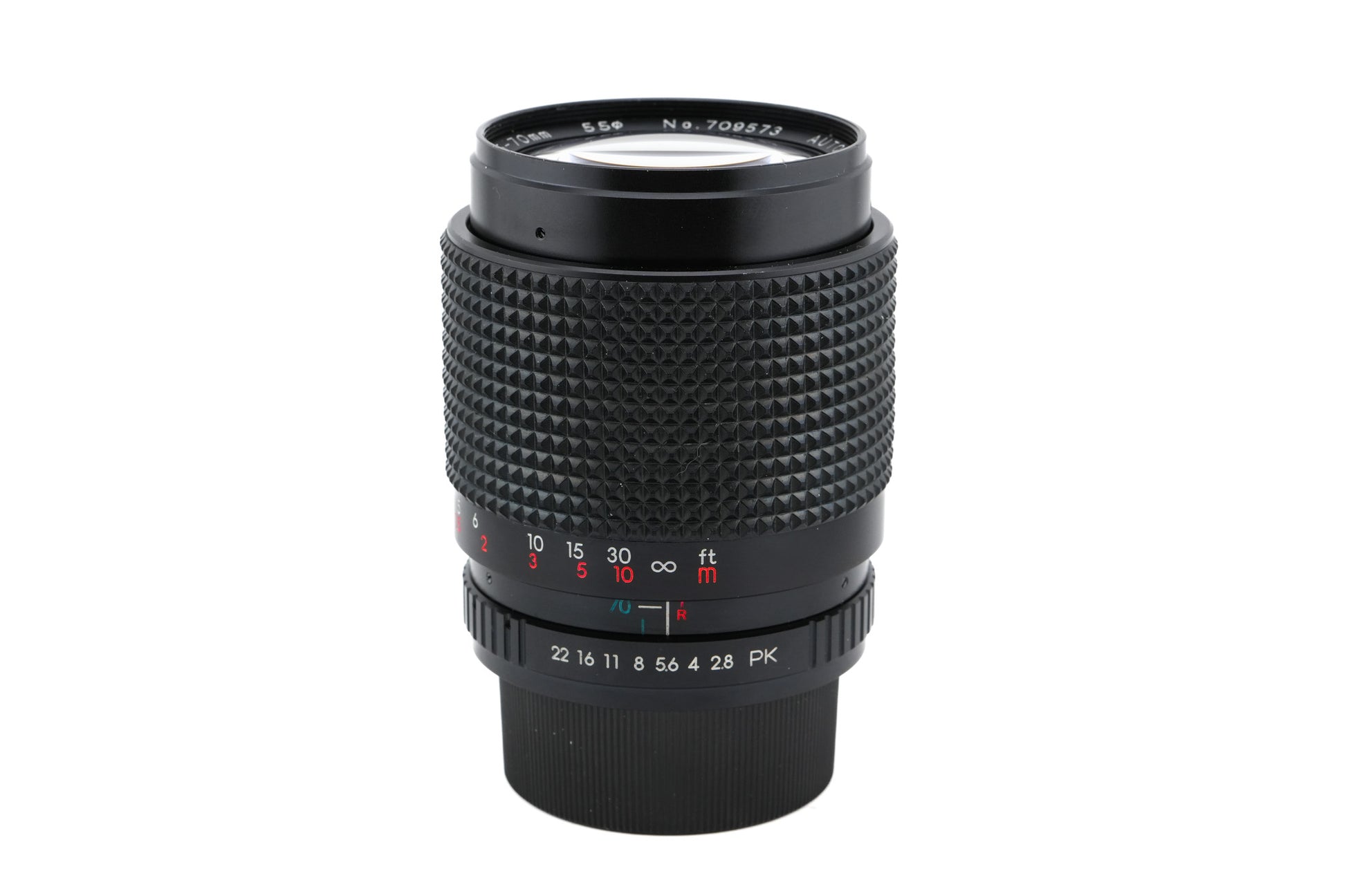 Manual focus zoom lens made for K-mount 35mm SLR cameras introduced by Revue. Metal body available in black.