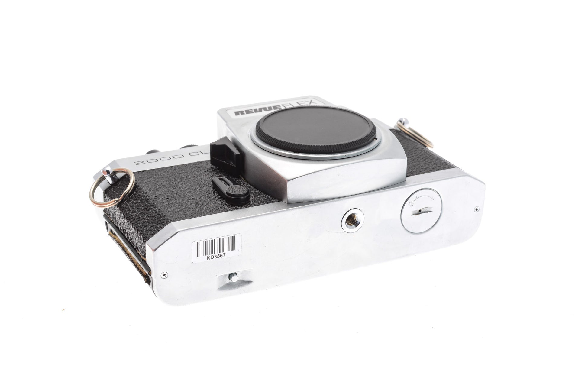 Manual focus M42-mount 35mm SLR camera released by Revue. The camera is actually a Chinon CX rebadged as Revueflex 2000 CL for the German retailer Foto-Quelle. Plastic body available in black & silver.