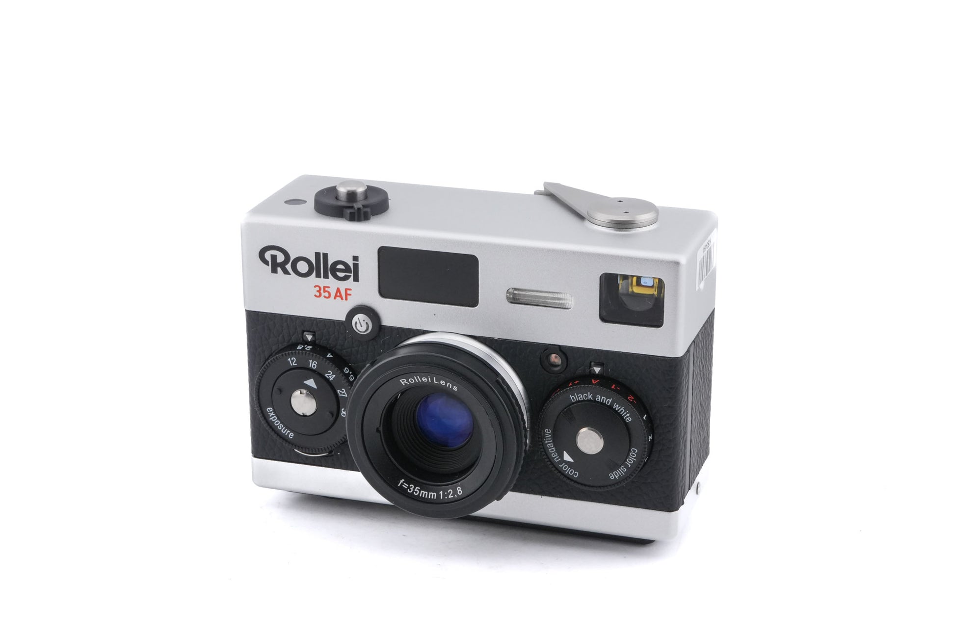 Autofocus compact 35mm film camera made by Rollei. Metal body available in silver.