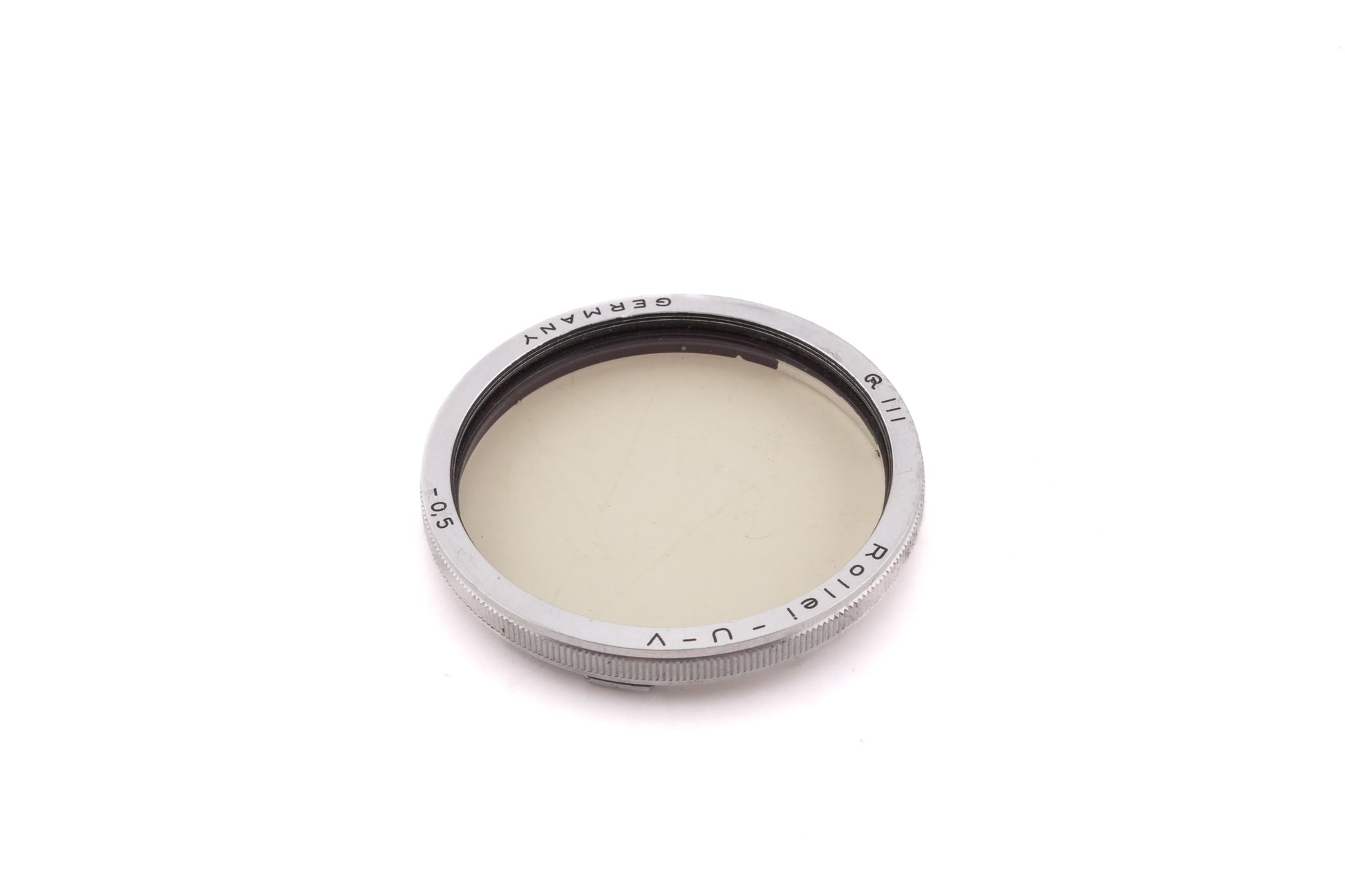 UV filter made for all TLR cameras that use Bay III accessories introduced by Rollei. Metal body aivalble in silver.