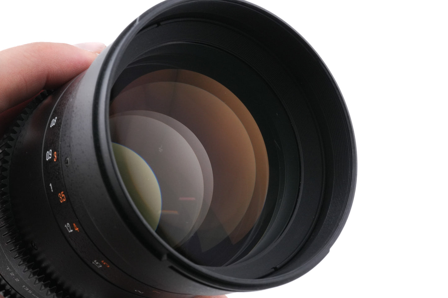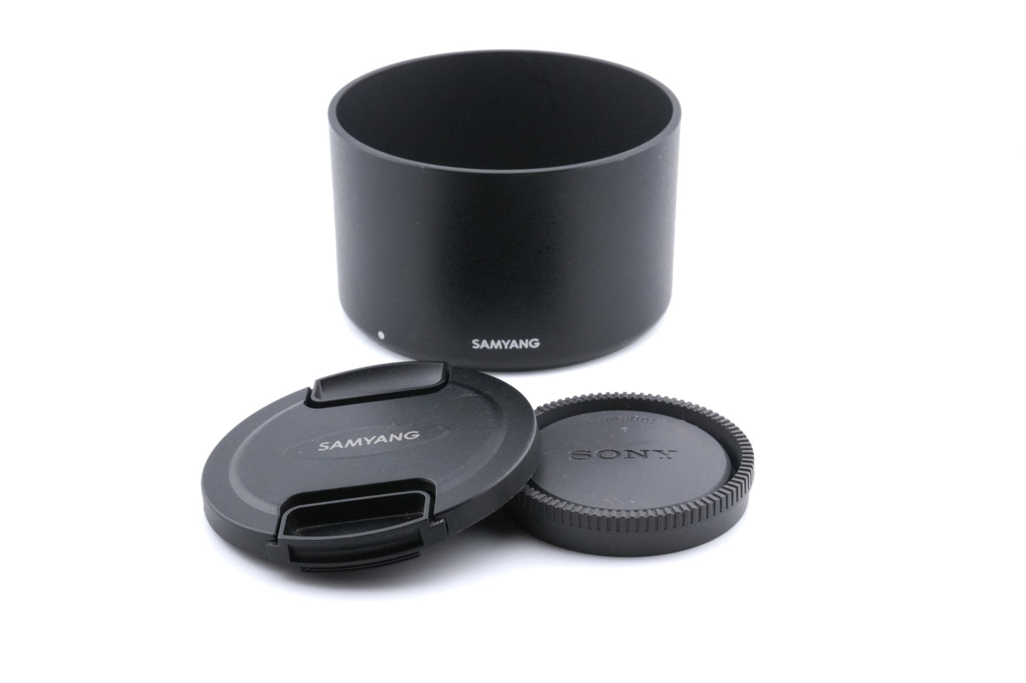 Manual focus short-telephoto lens for Sony E / FE-mount cameras made by Samyang. It features a stepless aperture ring for smooth and precise exposure adjustments during video recording. Metal body available in black.