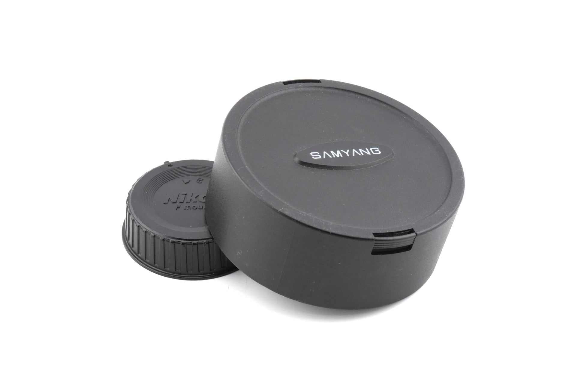 Manual focus wide-angle lens made for Nikon F-mount DSLRs by Samyang. Metal and plastic body available in black.