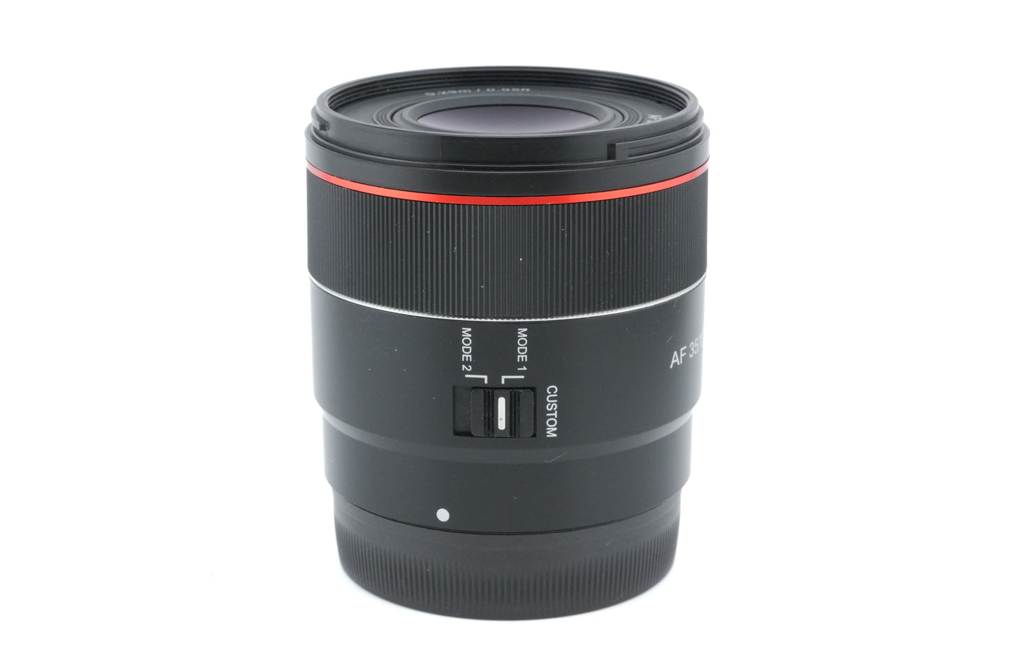 Autofocus normal lens made for FE-mount mirrorless cameras by Samyang. Metal and plastic body available in black.