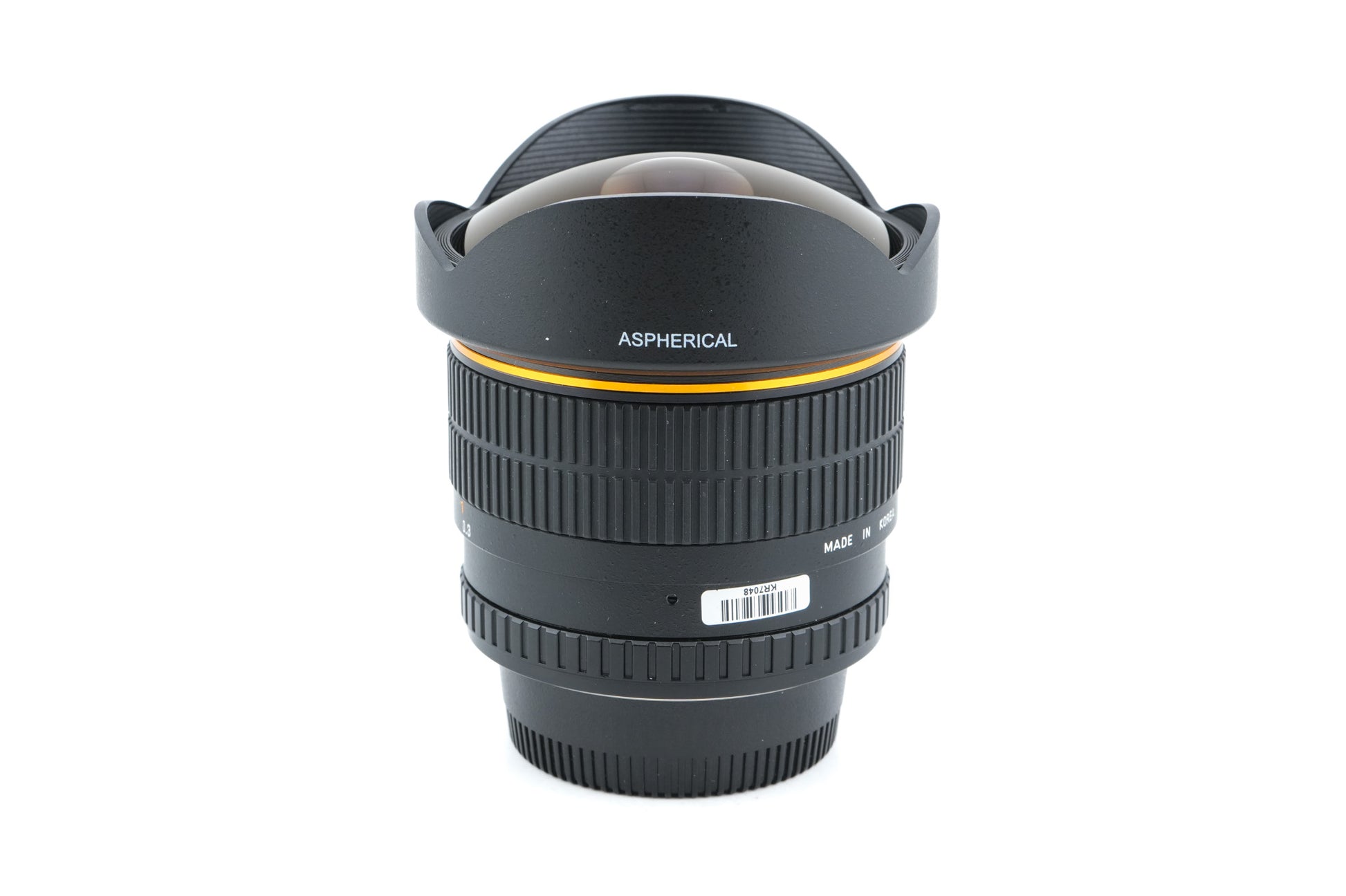 Manual focus fish-eye lens made for DX-mount DSLR cameras by Samyang. Metal body available in black.