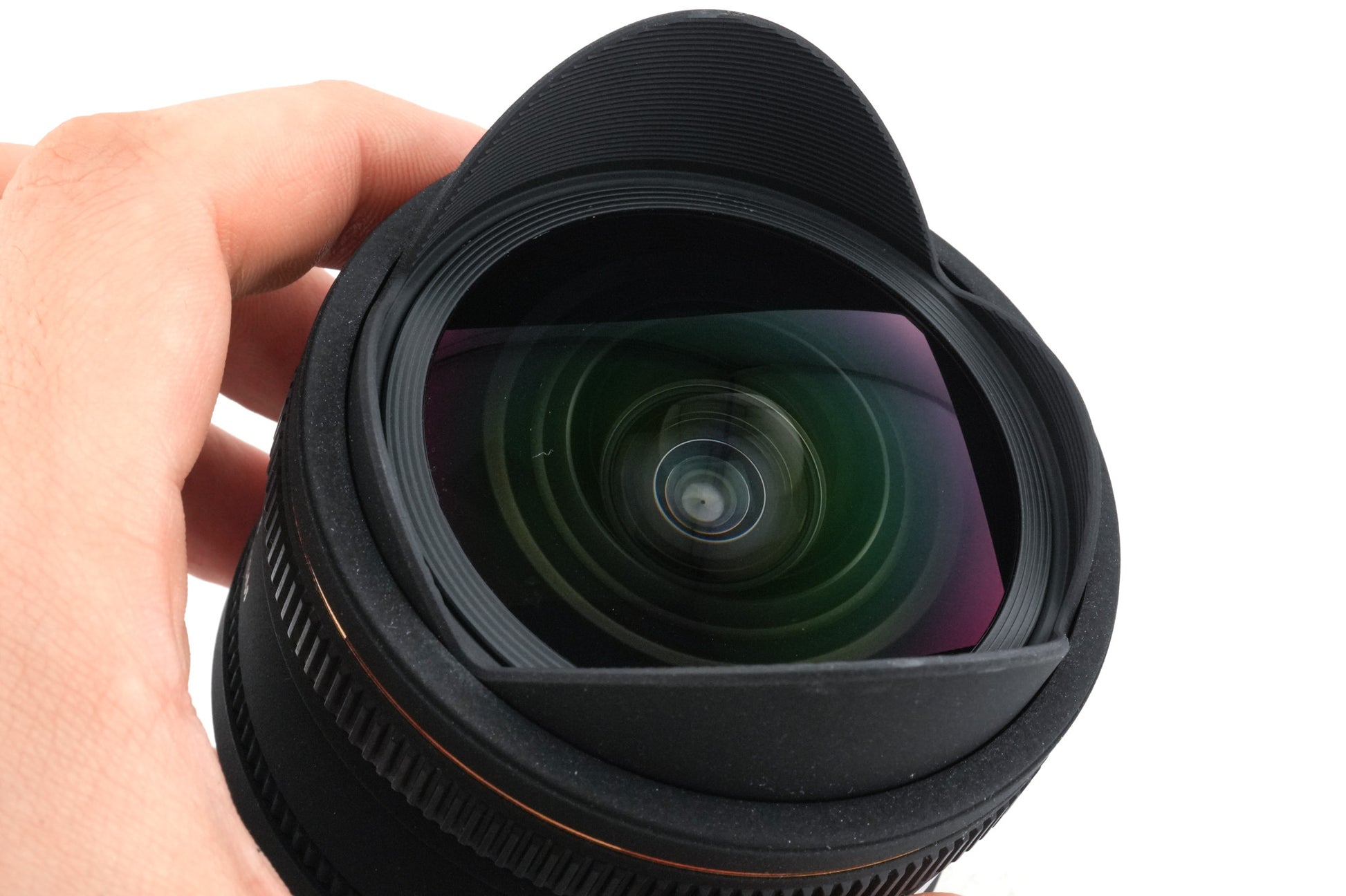 Autofocus fisheye lens made for Sony A mount digital SLR by Sigma. It uses Sigma's High Speed Motor (HSM) for autofocus. Metal/plastic body available in black.