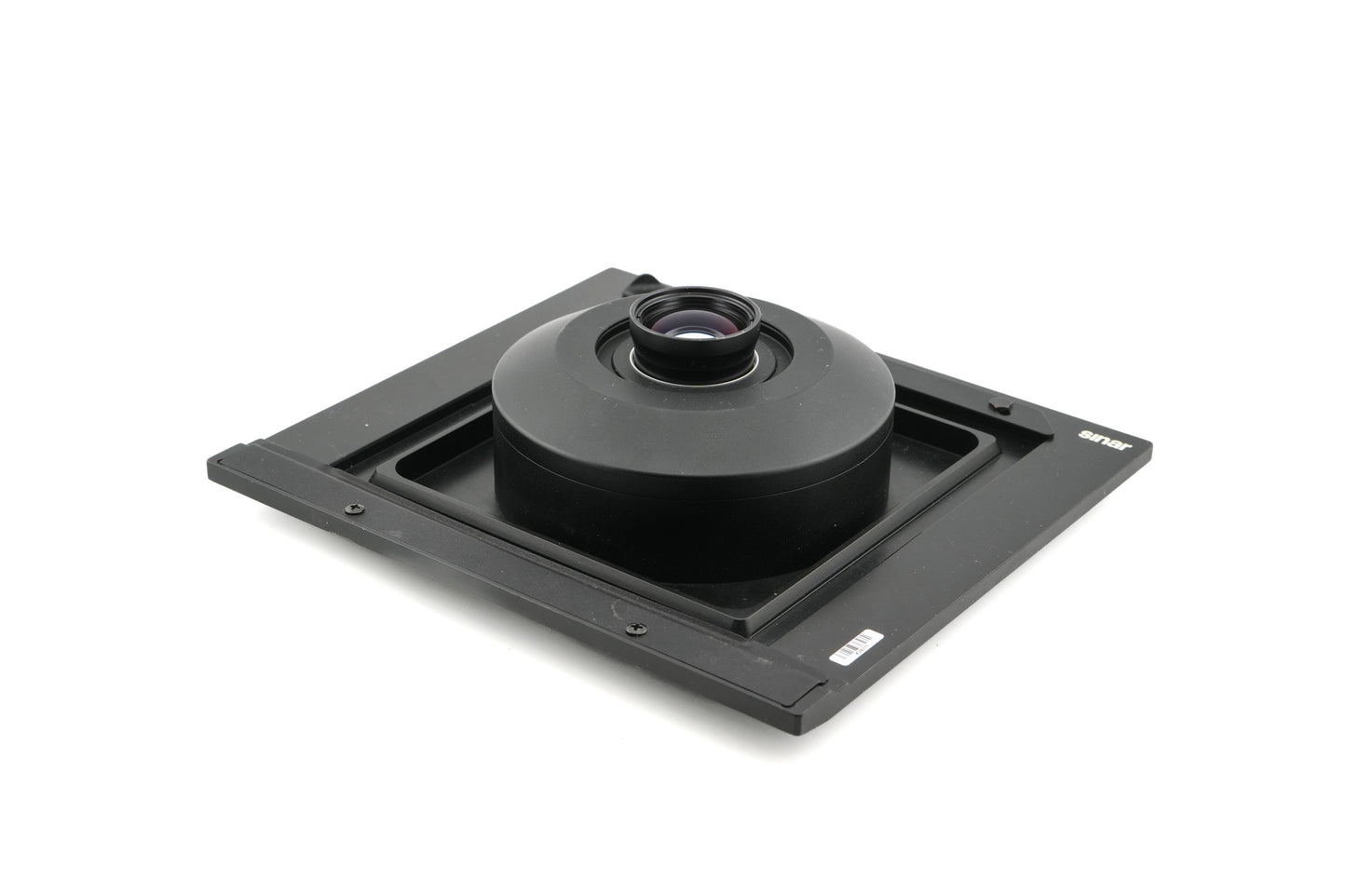 Large format normal lens made by Sinar. It is part of the Sinaron digital lens lineup, featuring auto aperture mounts and were designed for use with the digital single-chip CCD backs. Metal construction available in black.