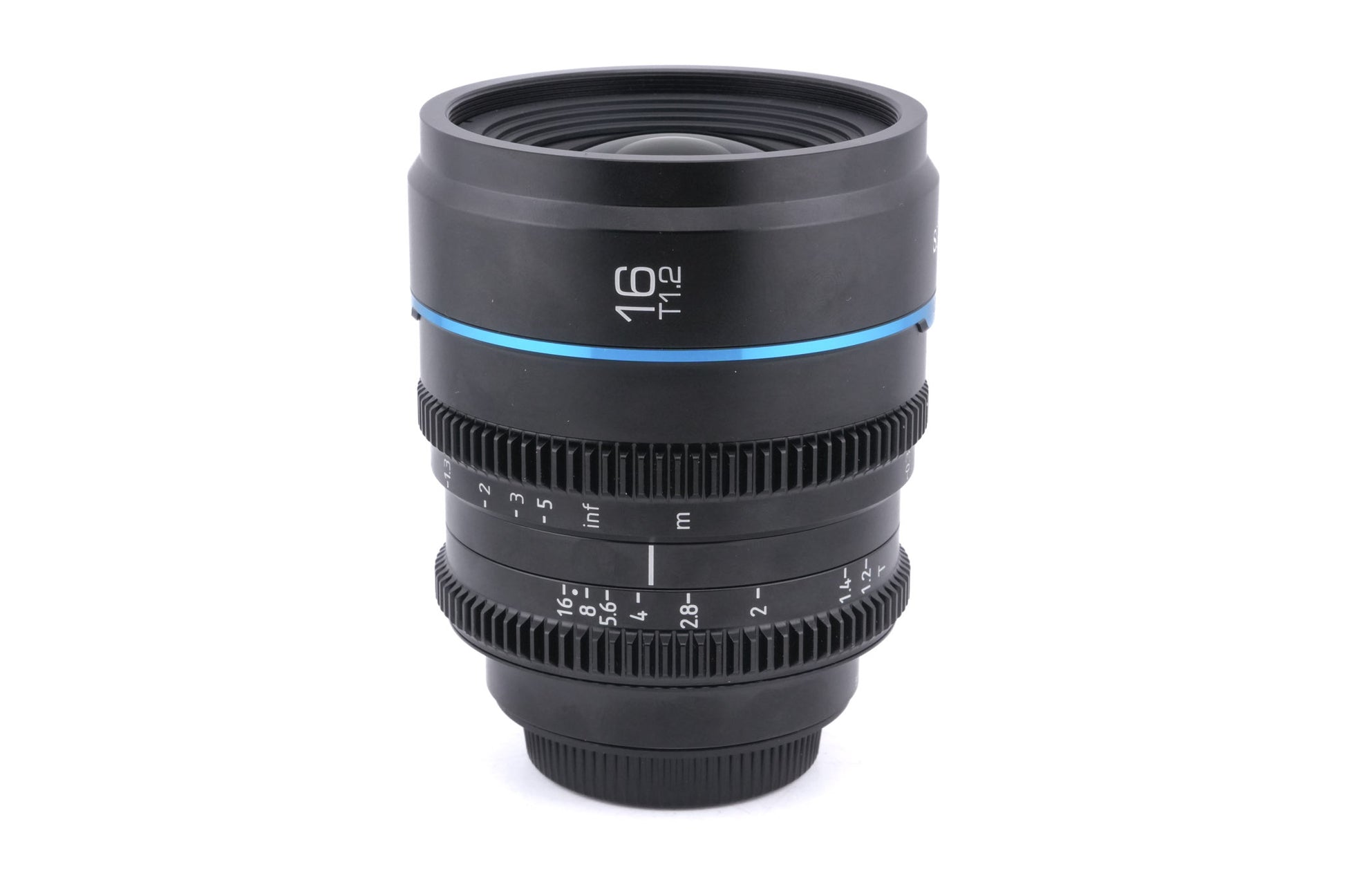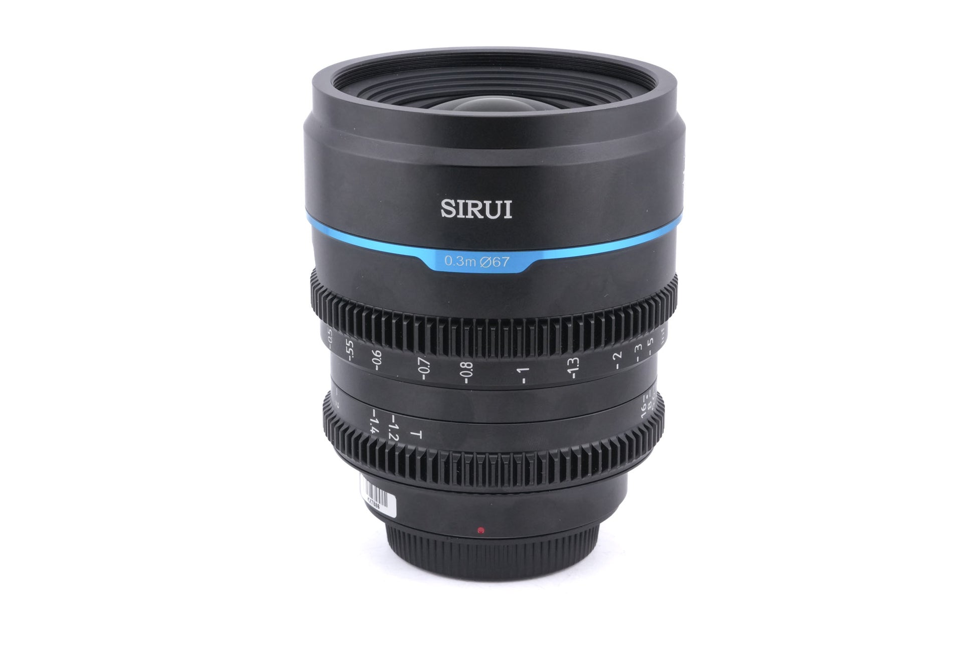 Manual focus wide-angle cinema lens made for Fujifilm X-mount digital mirrorless cameras by Sirui. It is designed for APS-C-sized sensors and gives the equivalent field of view to a 24mm lens on full frame/35mm. Like other cinema lenses, it has geared focus and aperture rings. Metal body available in black.