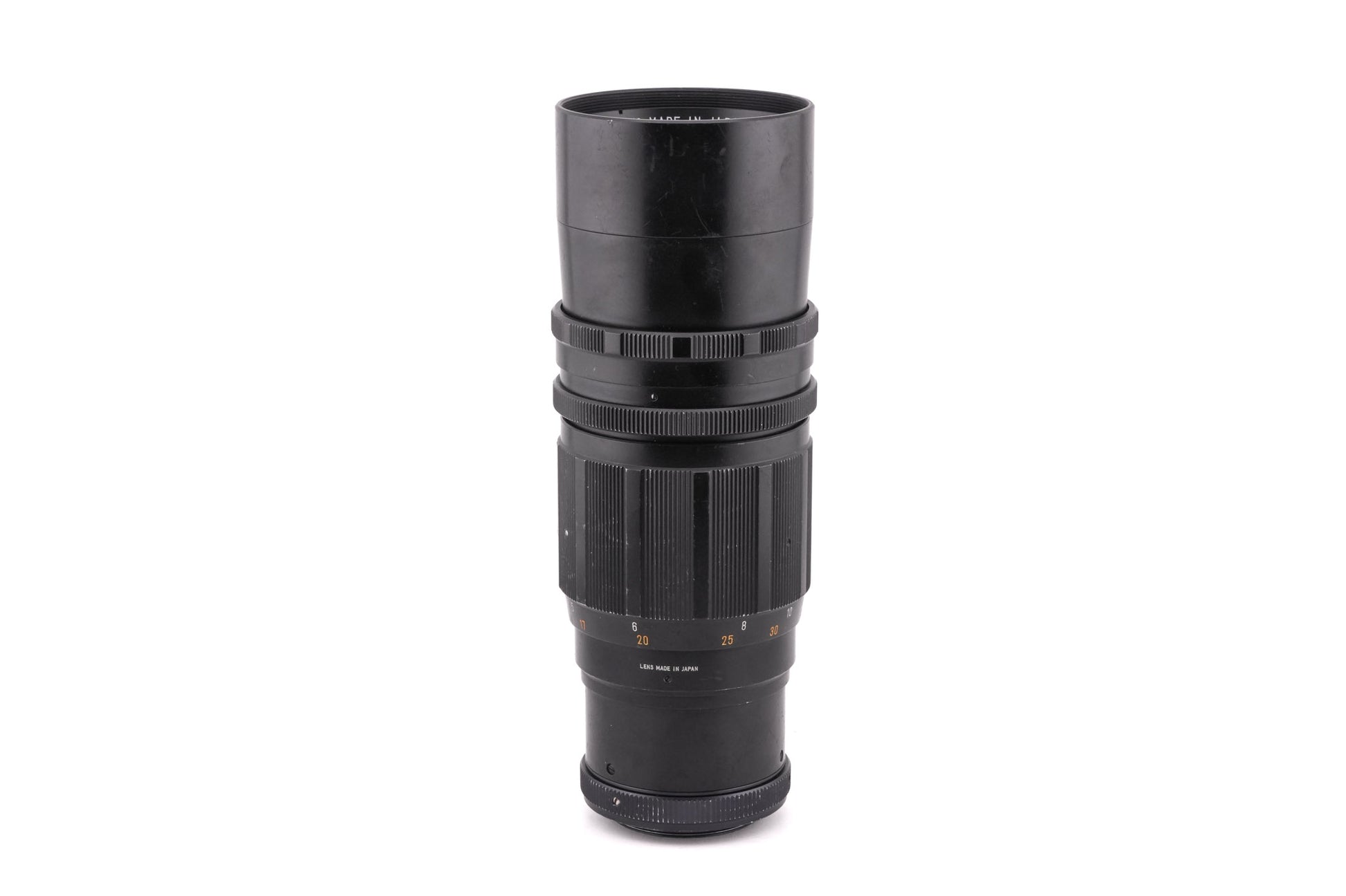 Manual focus telephoto lens made for T2-mount 35mm SLR cameras by Soligor. Manual aperture stop-down only. Made primarily for T-mount and sold with various adapters. Metal body available in black.