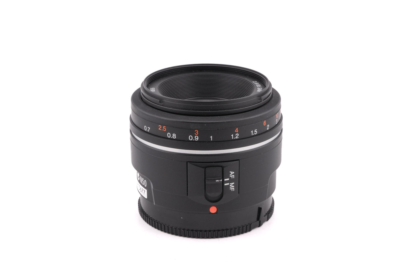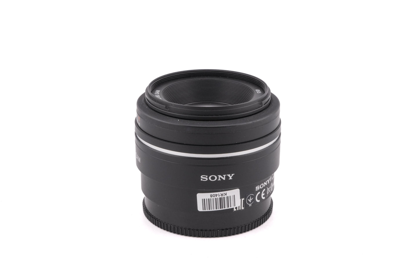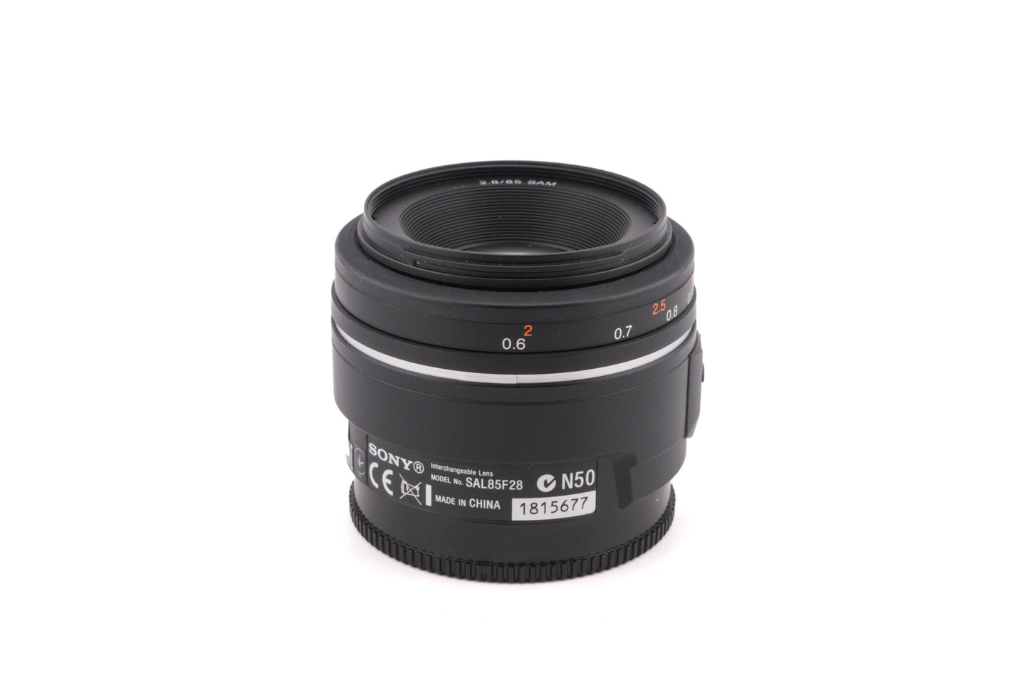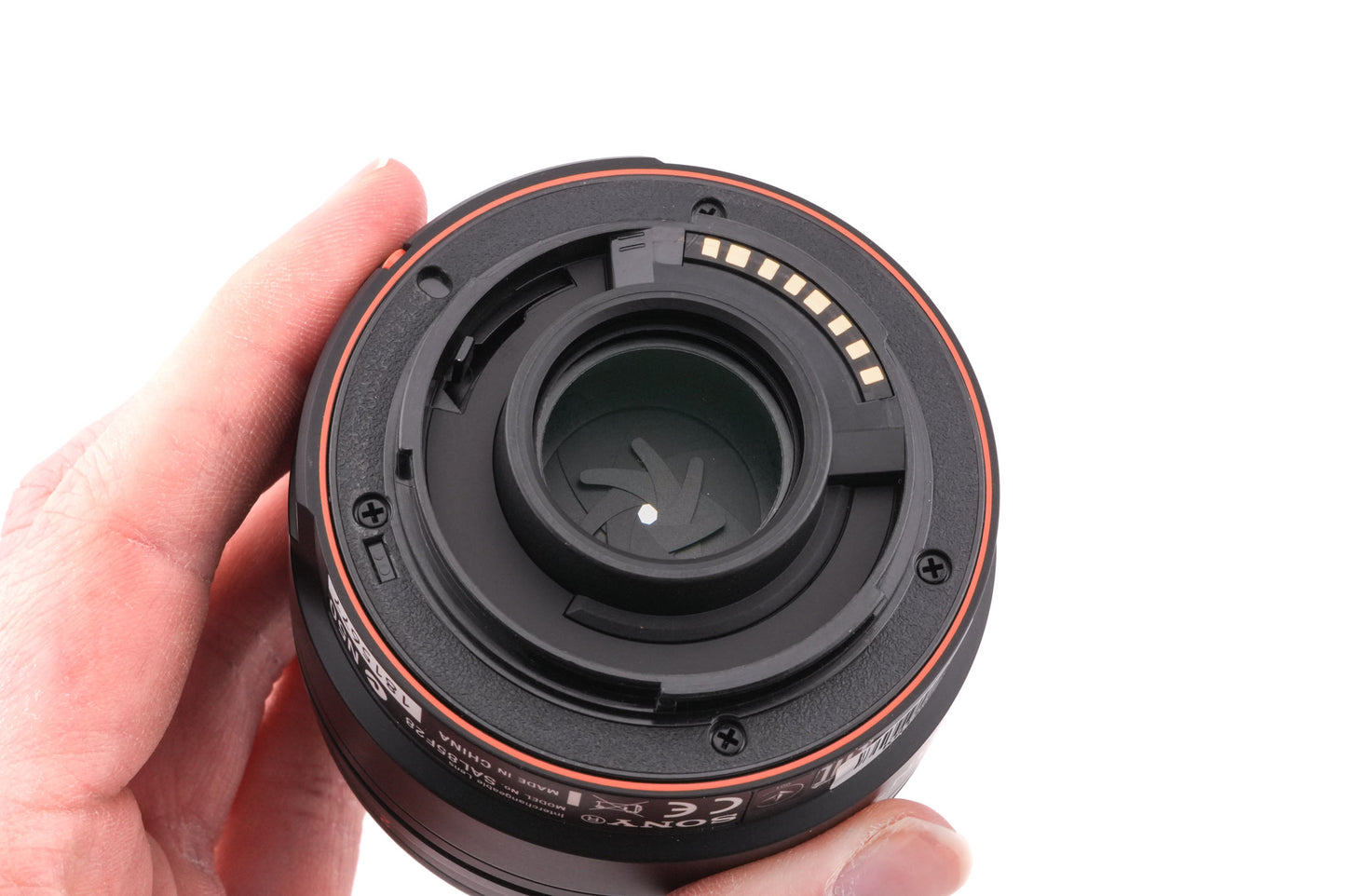Autofocus short telephoto lens made for A-mount DSLRs by Sony. Plastic body available in black.