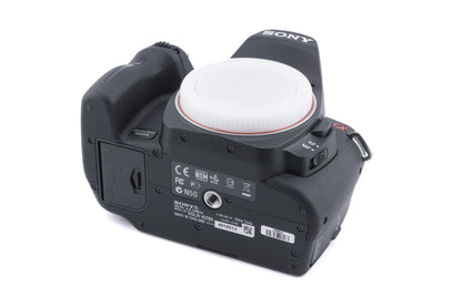 Autofocus APS-C DSLR camera released by Sony in 2010. Uses Memory Sticks or SD cards for storage. Has a built-in pop-up flash and a 2.7″ LCD screen. Plastic body available in black.