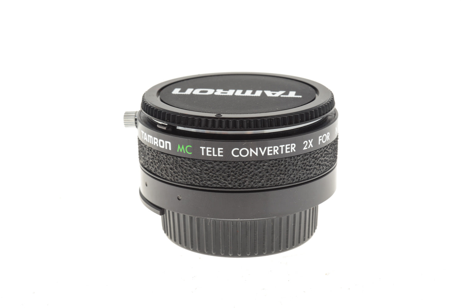 2x teleconverter from Tamron for Nikon F lenses with Ai tabs. Communicates aperture from the lens to the body. Multiple variations produced over the years, refer to the pictures for the specific version.