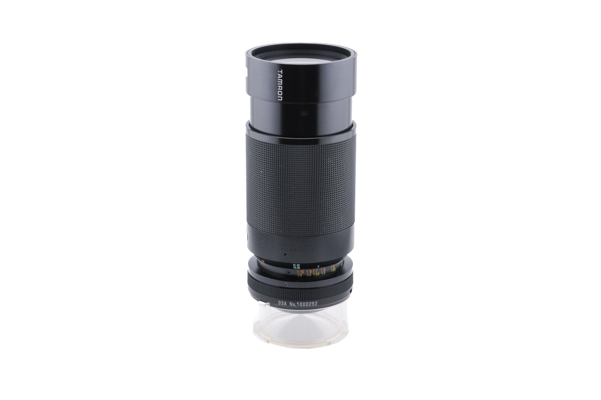 Manual focus telephoto push-pull zoom lens made by Tamron for their Adaptall system. It can be mounted to nearly all popular mounts of the era. It has a built-in hood and in-between aperture stops. Metal body available in black.
