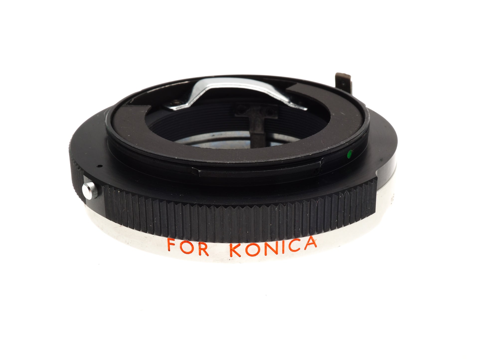 Lens adapter made by Tamron for mounting Adaptall lenses to Konica AR mount 35mm SLRs. Metal body available in black/silver.