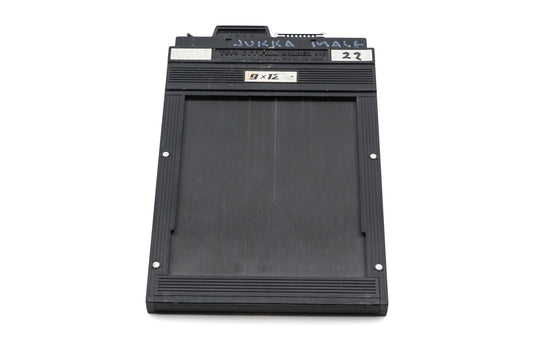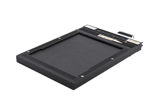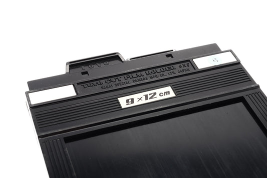 9x12cm sheet film holder made by Toyo. Each holder can hold two sheets of film, one on each side. Plastic body available in black.